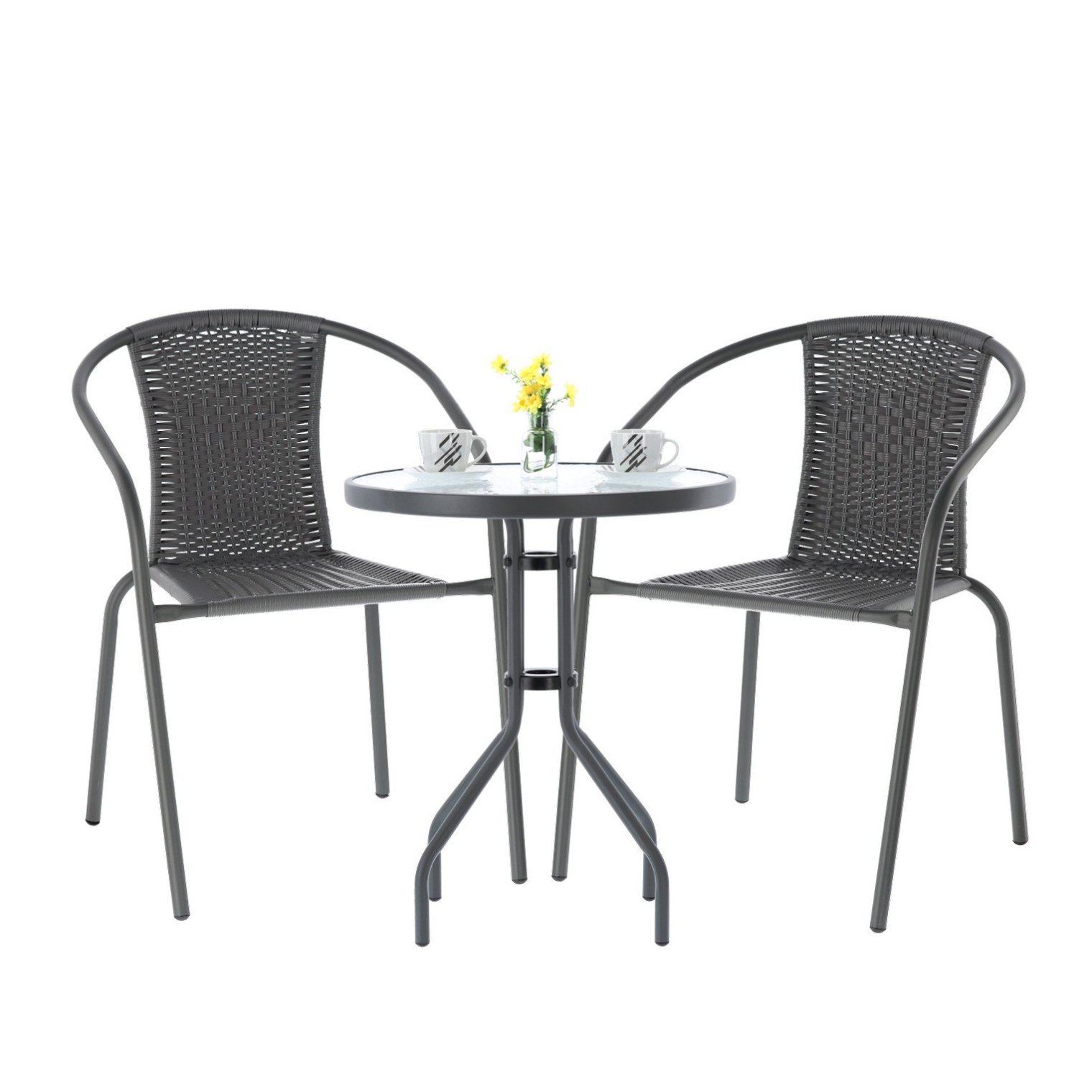 Комплект садових меблів GARDENLINE ідеально підходить для людей, які шукають поєднання класики та елегантності. Проста форма та стильна тасьма порадують кожного. Підходить для будь-якого приміщення – балкона, тераси чи саду. Стіл має загартоване скло з прозорою мозаїчною фактурою (для самостійного складання) і, напевно, прослужить довгі роки. Стільці є нерозбірною звареною конструкцією, покритою порошковою фарбою.