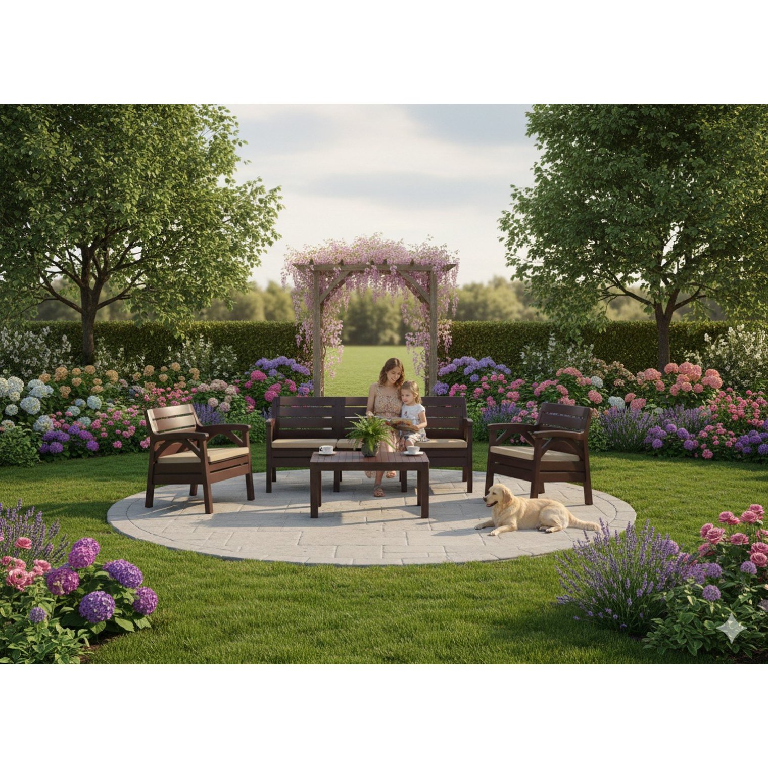 Створіть стильну та комфортну зону відпочинку у своєму саду, на терасі чи патіо. Комплект садових меблів SANTANA - це ідеальне поєднання класичної елегантності та повсякденної функціональності. Варіант із тримісною лавою забезпечить ще більше місця для відпочинку з родиною та друзями.