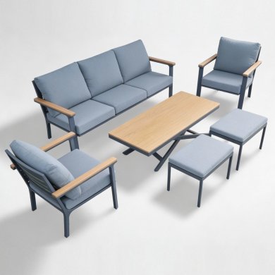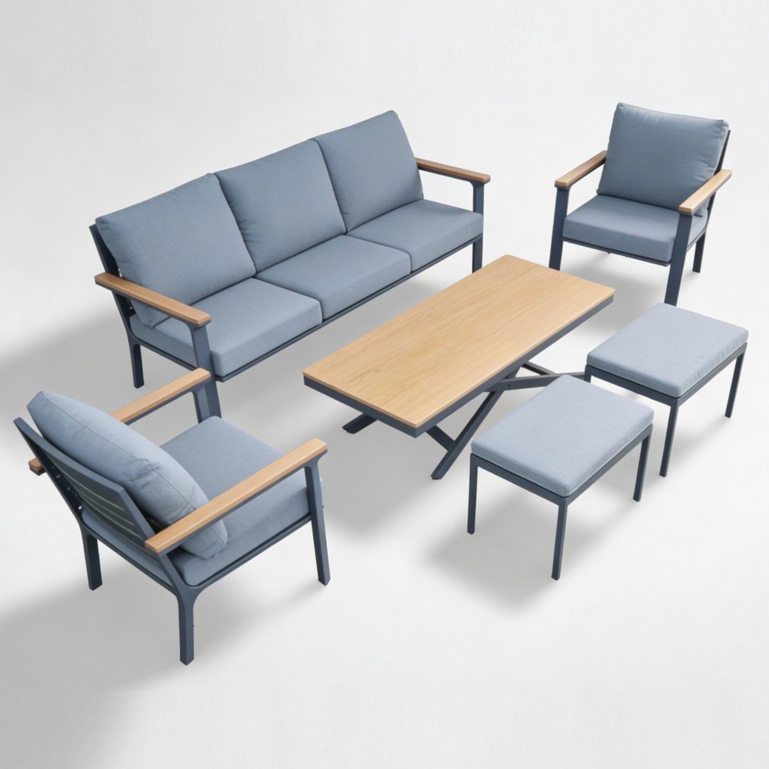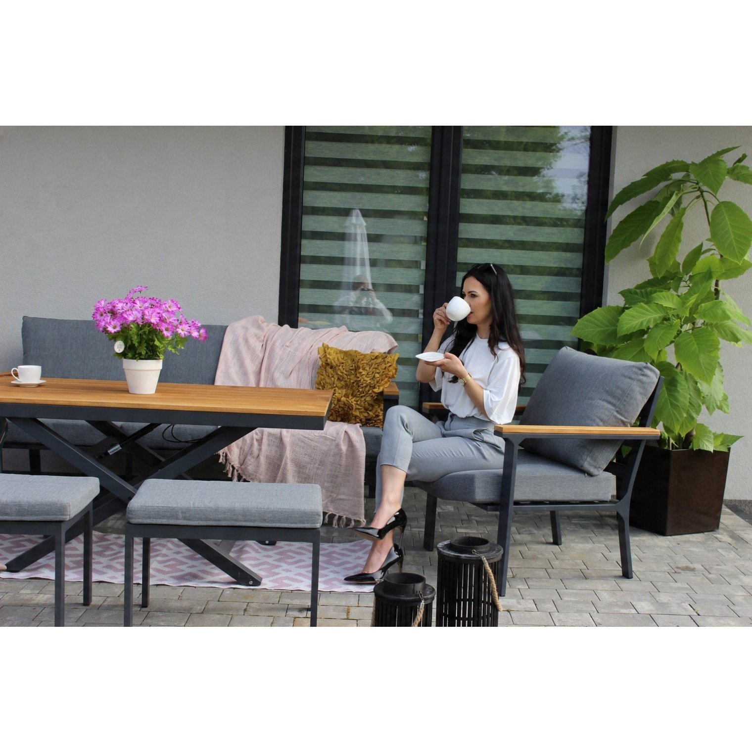 Комплект садових меблів з алюмінію та тику, 6 предметів. Створіть ідеальне місце для відпочинку у вашому саду або на терасі за допомогою наших елегантних меблів. Цей набір поєднує в собі сучасний дизайн та міцні матеріали, пропонуючи комфорт та стиль в одному.