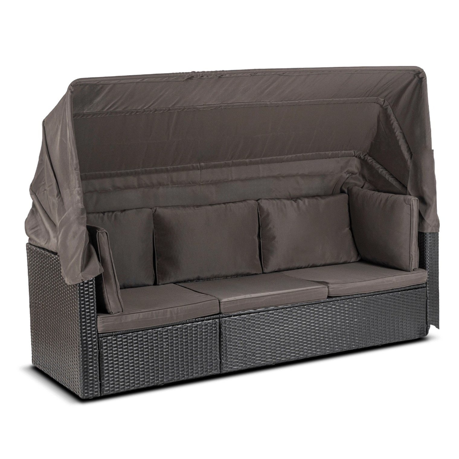 - Диван оснащений функціональним сонцезахисним козирком, який підвищує комфорт відпочинку на відкритому повітрі.
