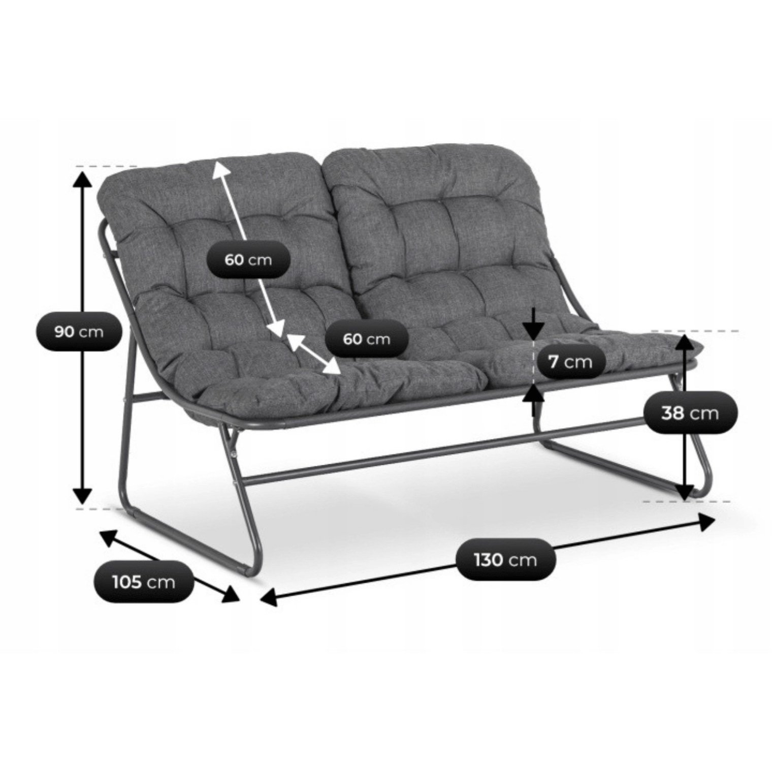 - Двомісний диван - просторий і зручний, що ідеально підходить для спільного відпочинку або розслаблення протягом дня.
