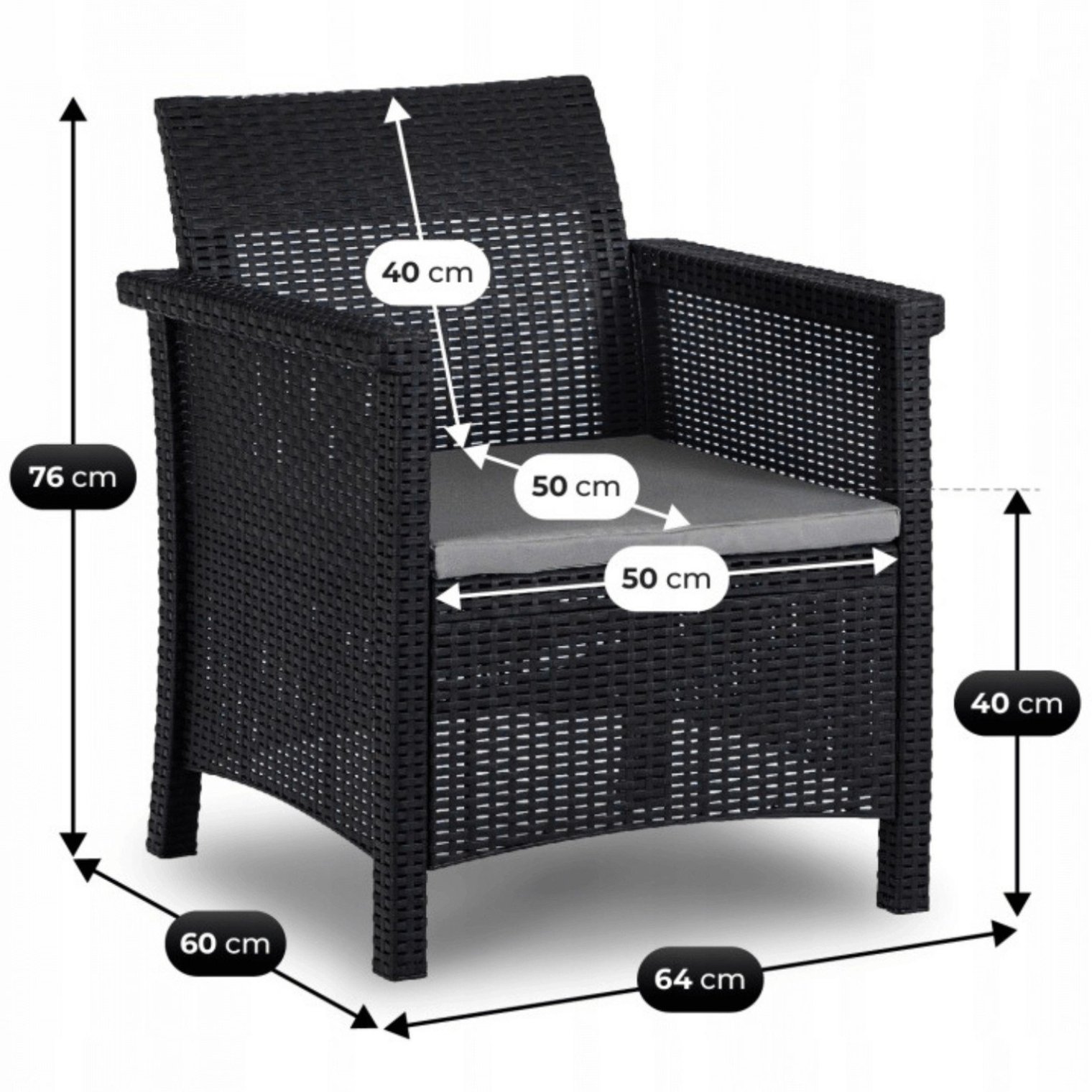 - Універсальний стиль: Класична чорна гамма кольорів і сучасний дизайн дозволяють легко адаптувати комплект до різних варіантів оформлення саду, тераси або патіо.