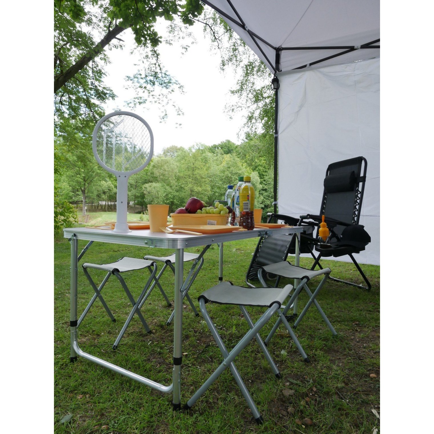Ідеальне рішення для любителів активного відпочинку! Цей повний кемпінговий набір включає функціональний стіл та чотири складні стільці — готові до поїздок за місто, на дачу, в кемпінг або на сімейний пікнік.