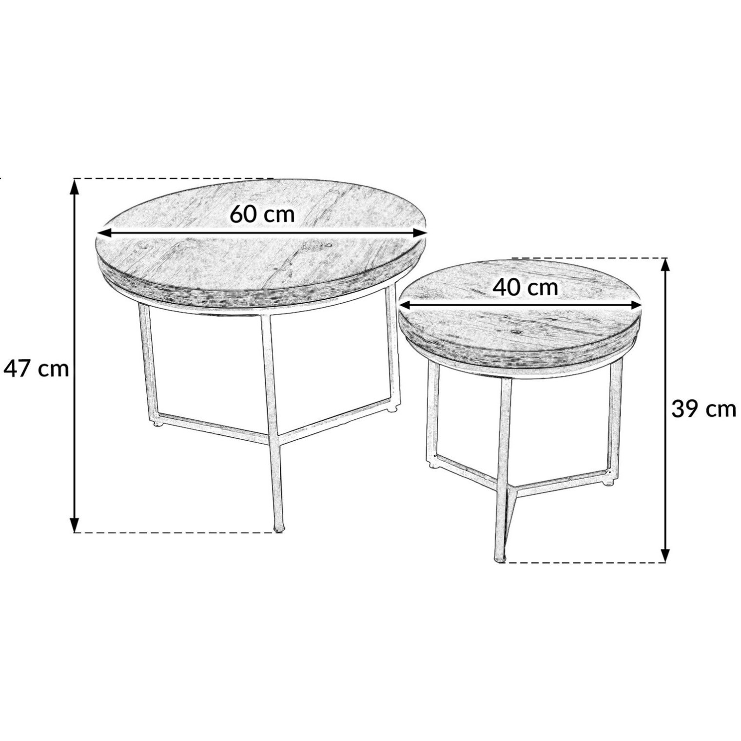 Розміри великого столика: 60 x 47 см - ідеально підходить як основний журнальний столик, вміщуючи всі необхідні аксесуари, напої та предмети декору. Розміри маленького столика: 40 x 39 см - ідеально підходить для доповнення до великого столу або як предмет меблів в невеликих приміщеннях. Завдяки різним розмірам столи можна використовувати разом або окремо, залежно від ваших потреб та простору. Менший стіл можна заховати під великим.
