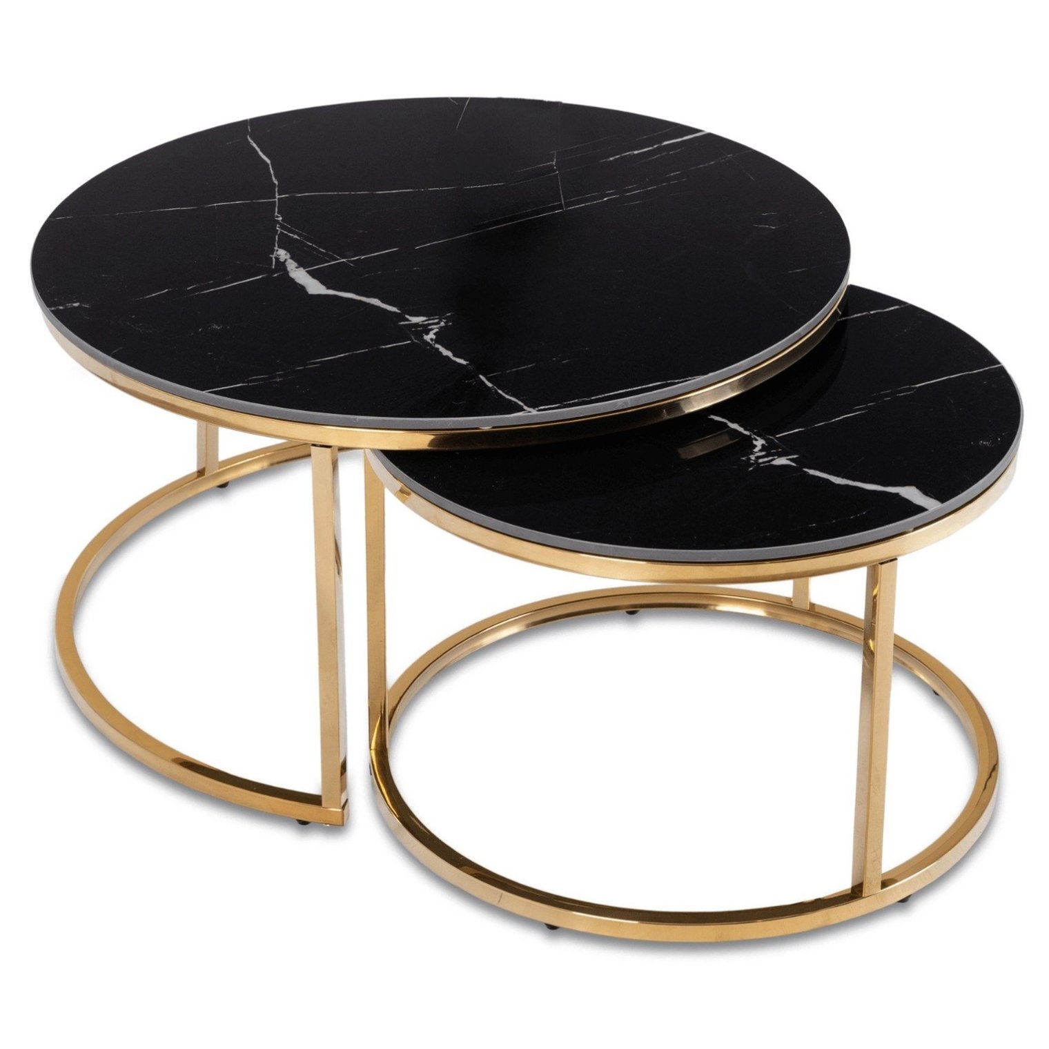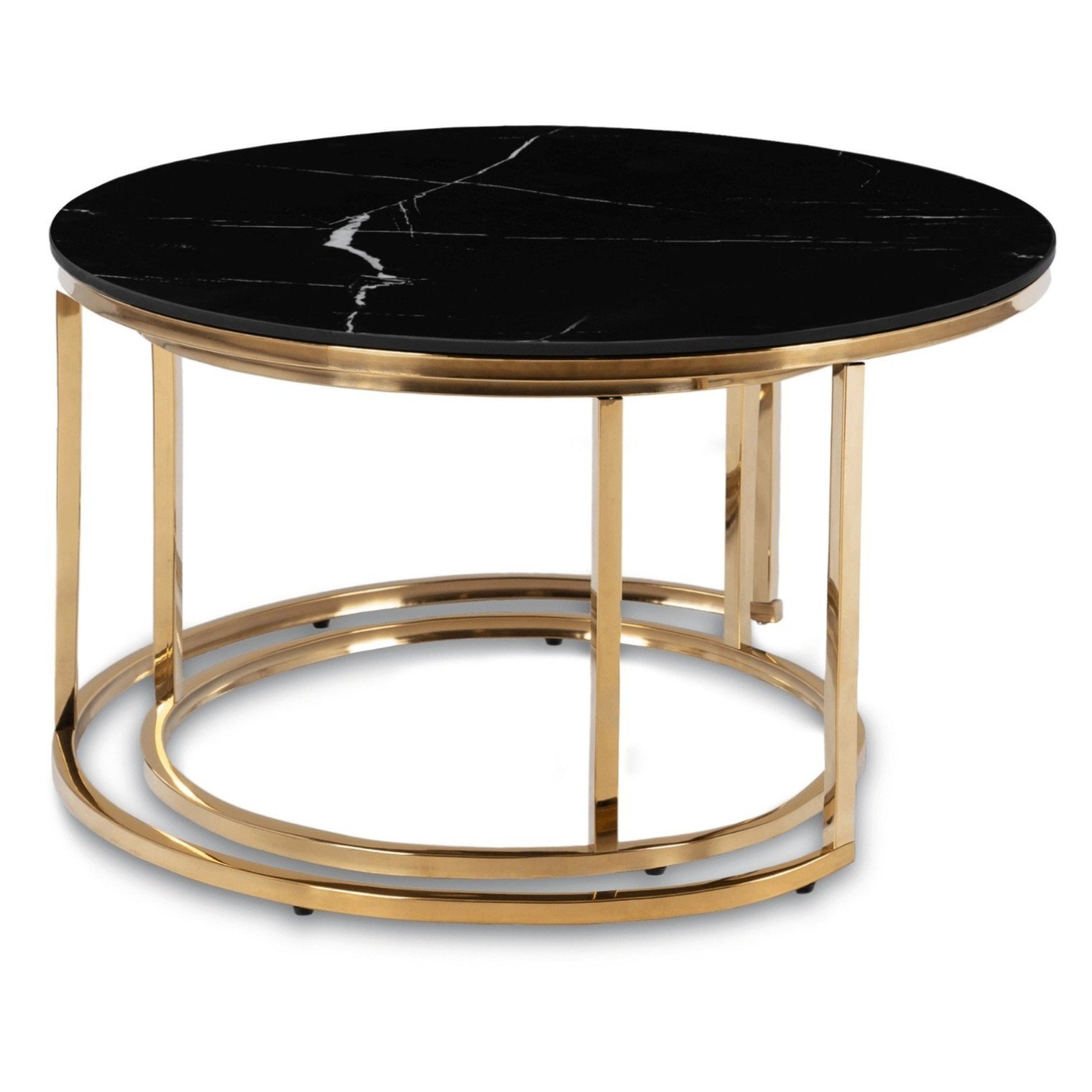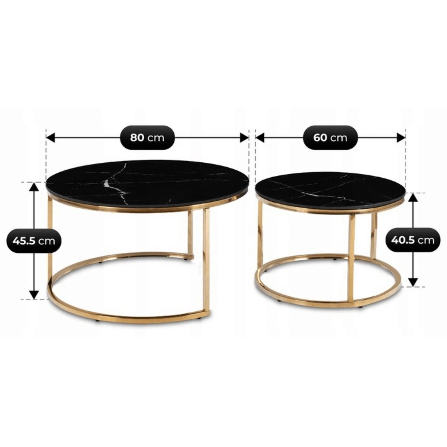 - Золота металева основа: міцна конструкція золотистого відтінку надає столикам розкішного вигляду і робить їх декоративними.