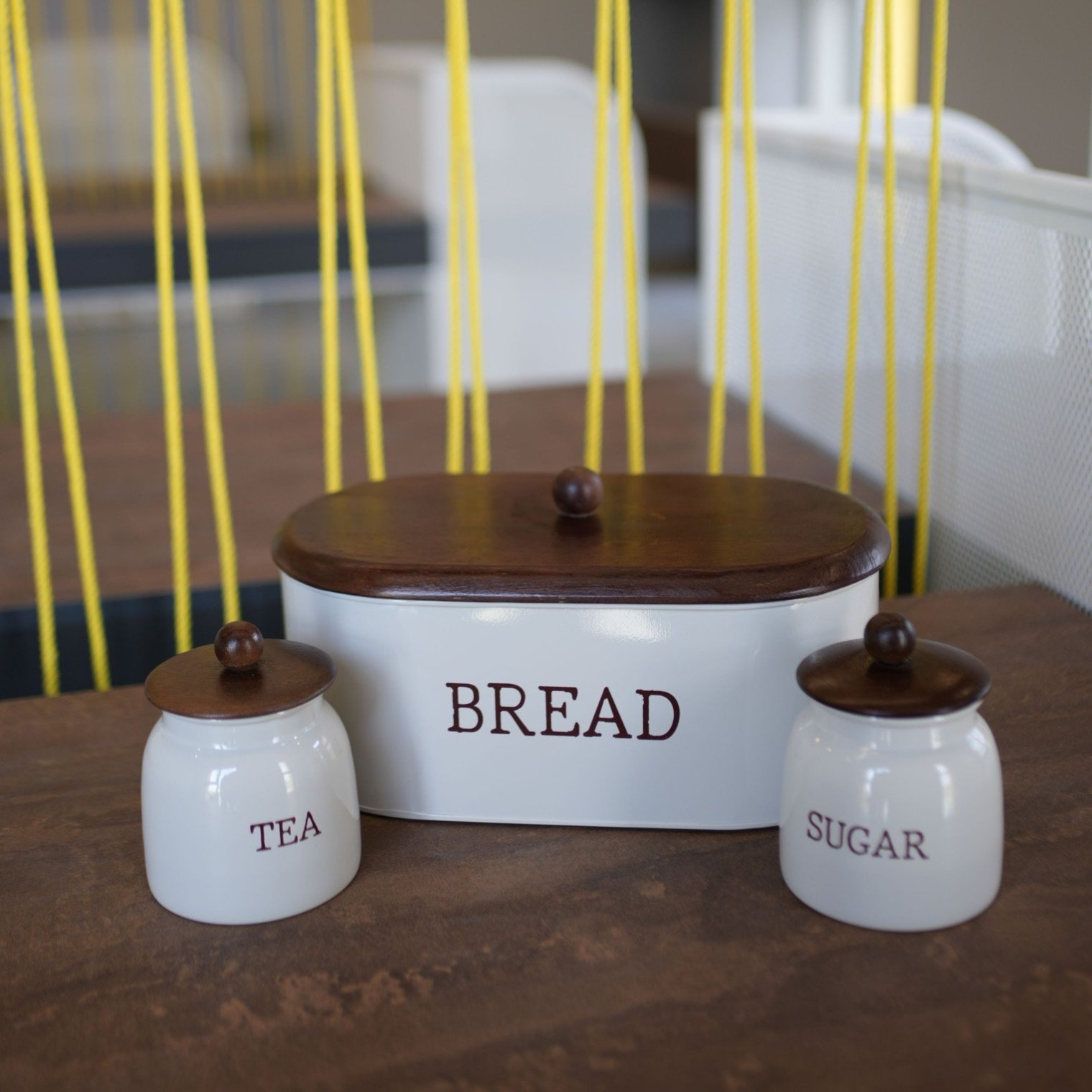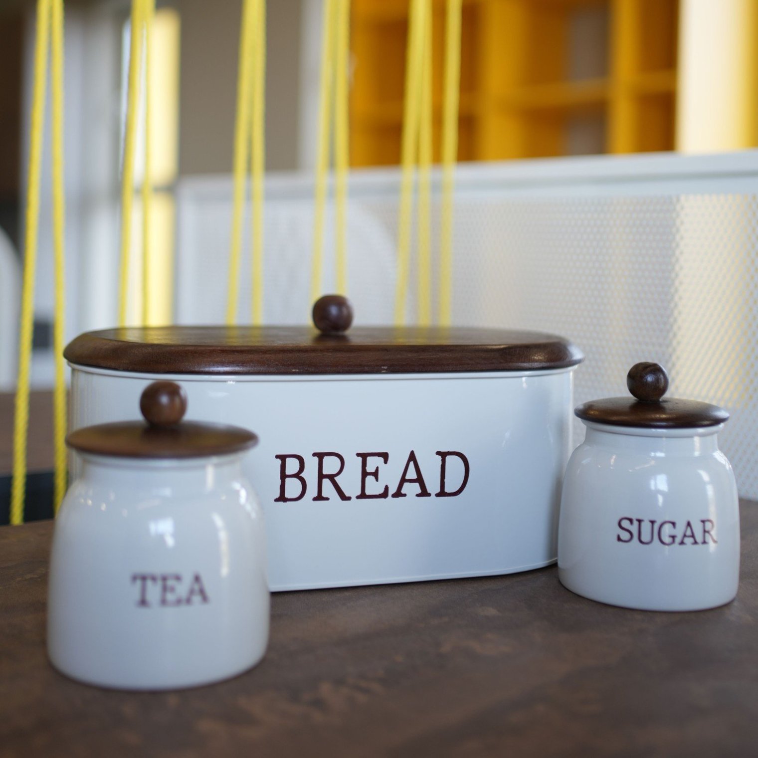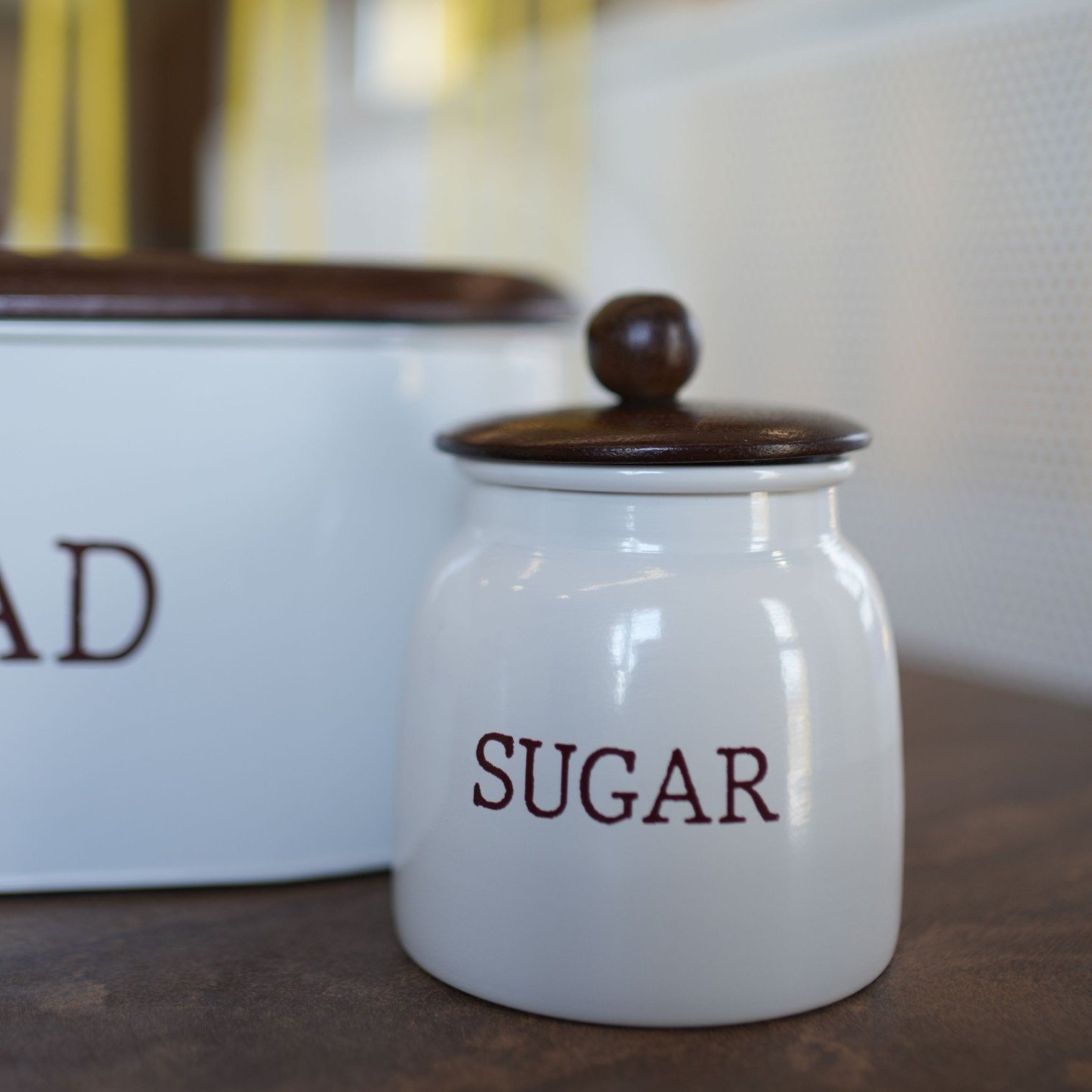 Кухонна ємність із дерев'яною кришкою для цукру.