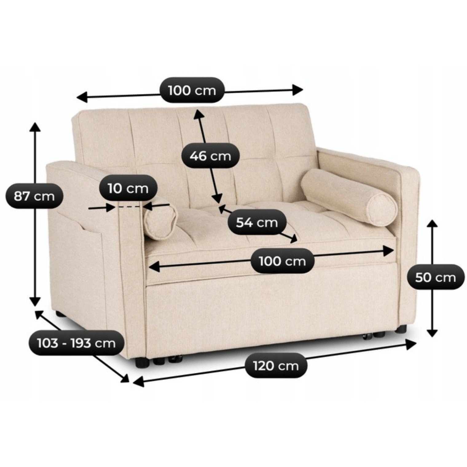 - Глибина: 103(193) см