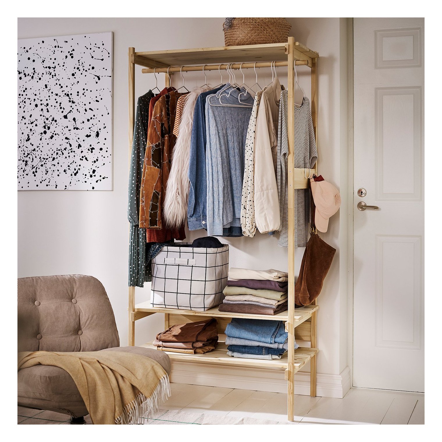 Обидва кінці вішалки також служать гачками — ідеальне місце для довгого одягу та сумок.