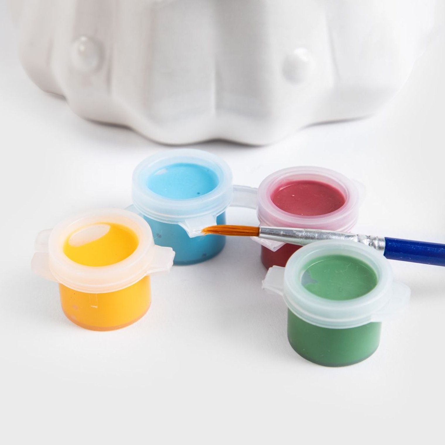 - У набір входить: стаканчик, 4 фарби, пензлик