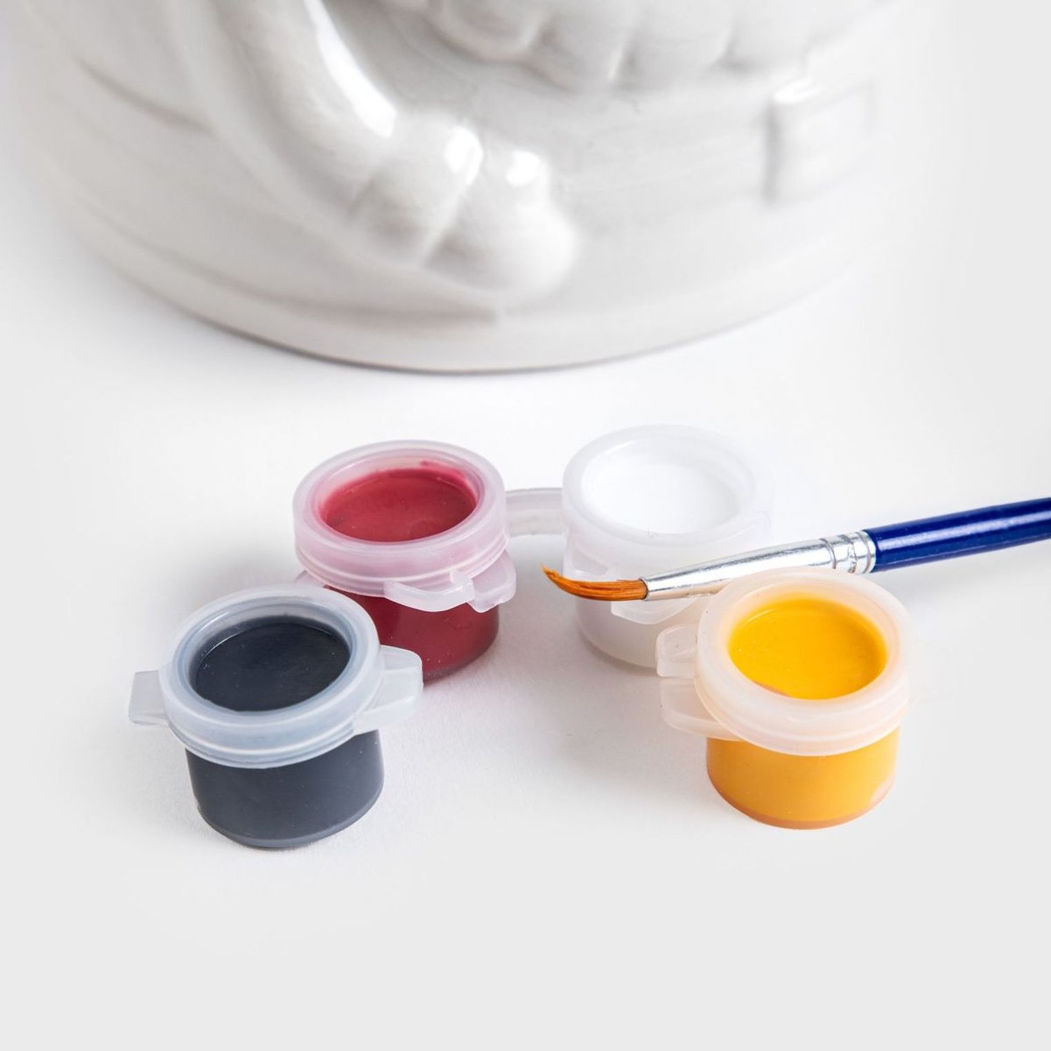 - У набір входить: стаканчик, 4 фарби, пензлик