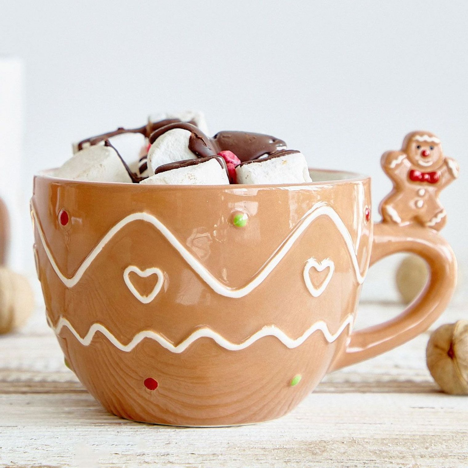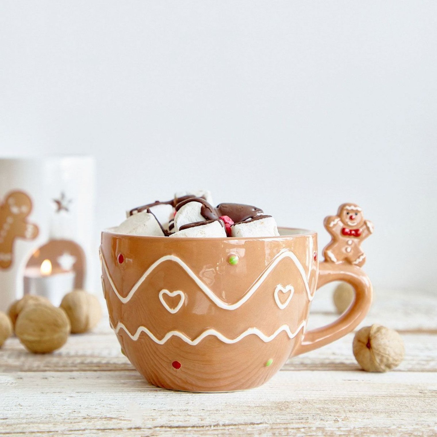 Класичний кухоль HOMLA BISCOTTO має широку чашу, яка дозволяє повною мірою розкрити аромат напою. Вона має форму великої чашки, об'єм 400 мл та розміри 9 x 12 см (висота x діаметр). Завдяки властивостям кераміки кружка довше зберігає гарячий напій. Ручка кухля красиво декорована чарівною фігуркою імбирного печива.