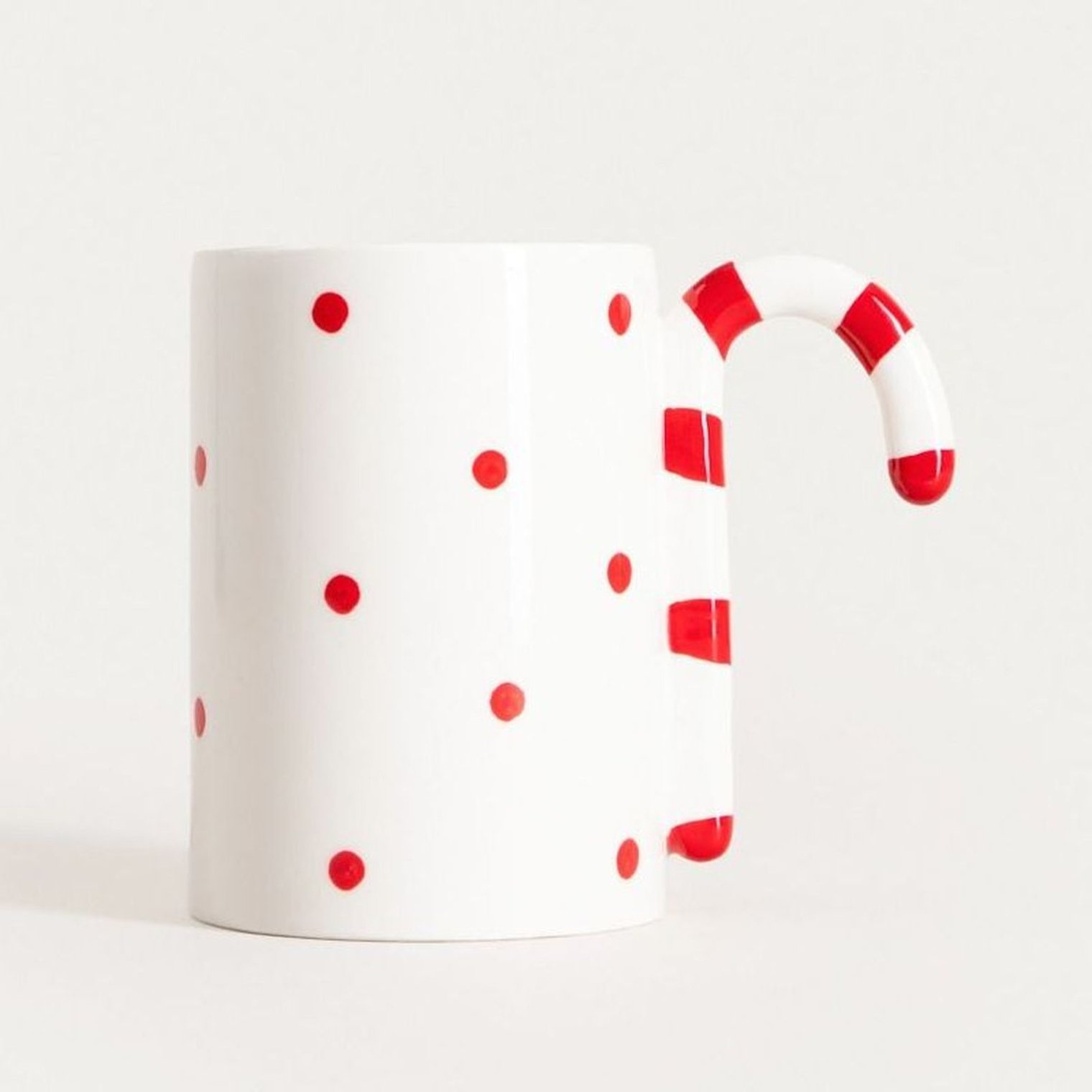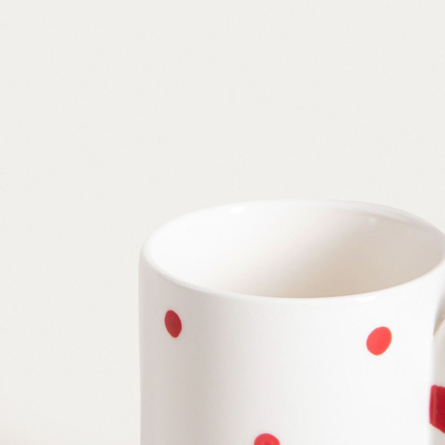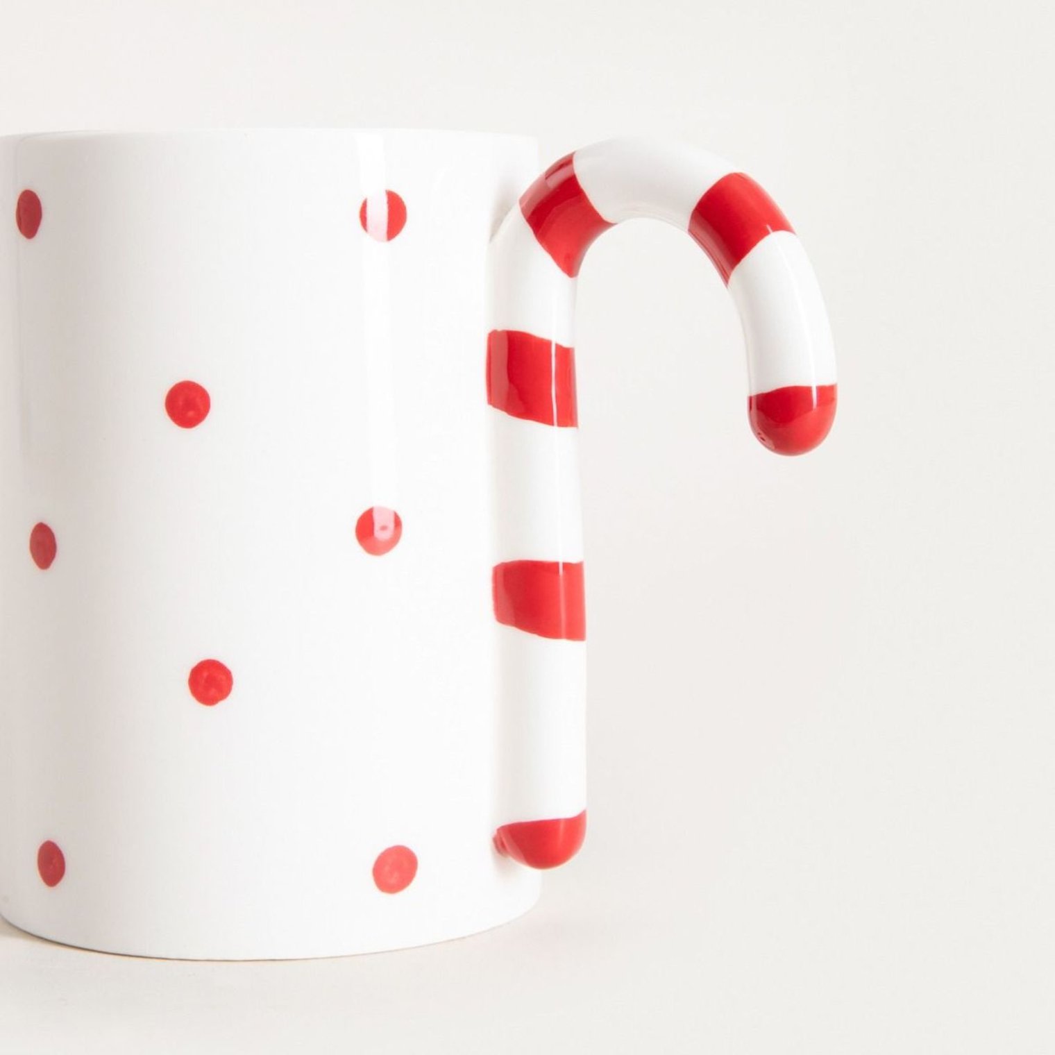Ця червона кружка в горошок прикрашена ручкою у формі льодяника. Популярний святковий мотив робить її ідеальним доповненням до будь-якого різдвяного сервірування столу.