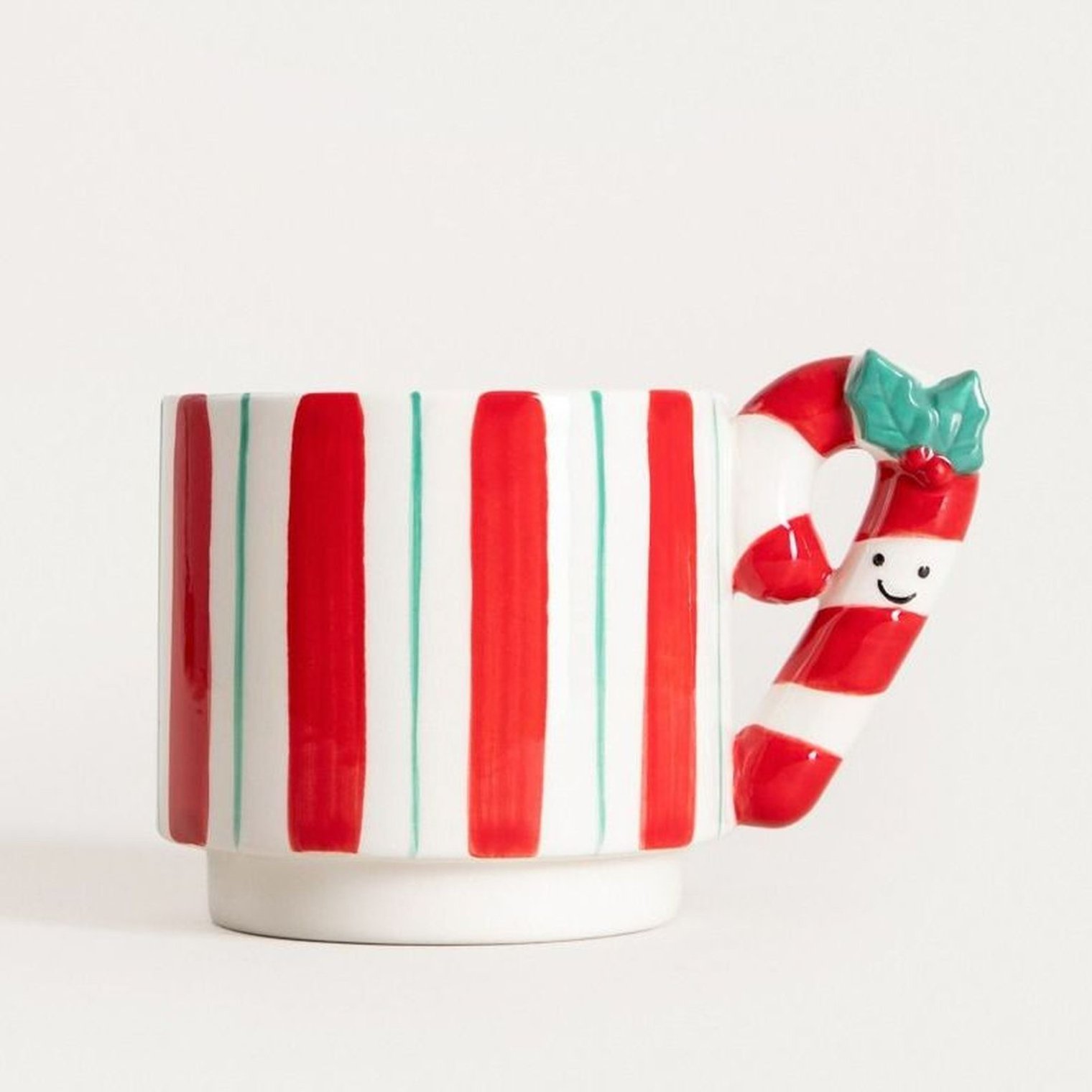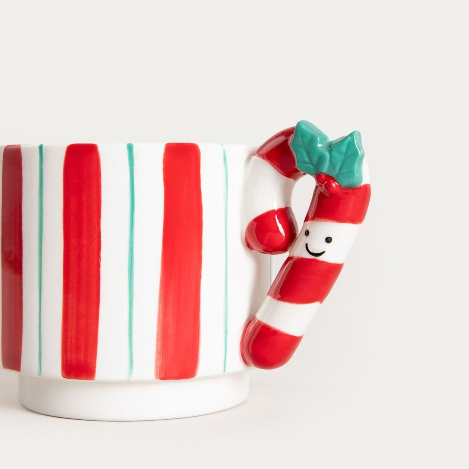 Цей кухоль яскравих кольорів з чарівною ручкою у формі льодяника. Вона прикрашена святковим візерунком у червоно-зелену смужку. Вона ідеально підходить для гарячого напою, який зігріє вас холодного зимового дня. Вона також стане чудовою окрасою святкового столу.