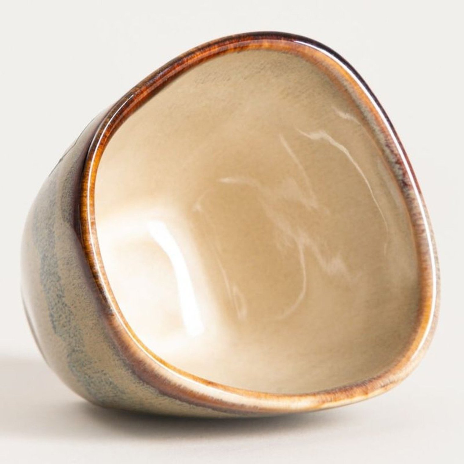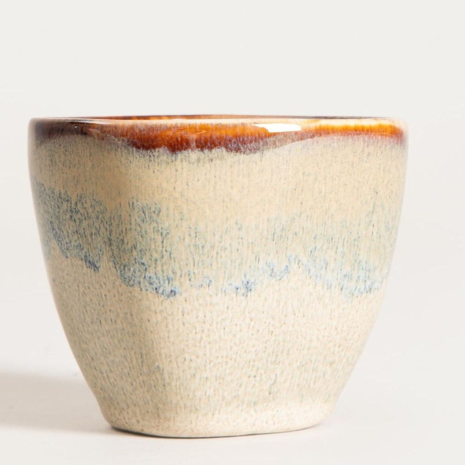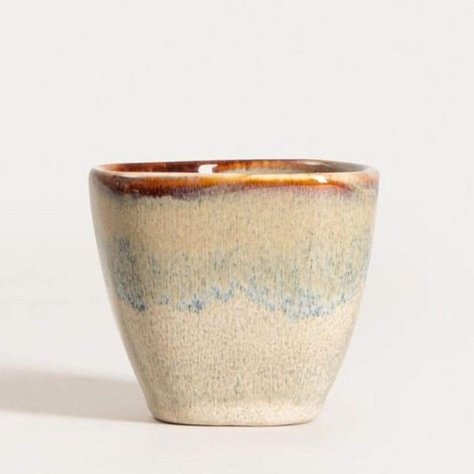 Бежевий кухоль без ручки з синьою смугою, 0,1 л.