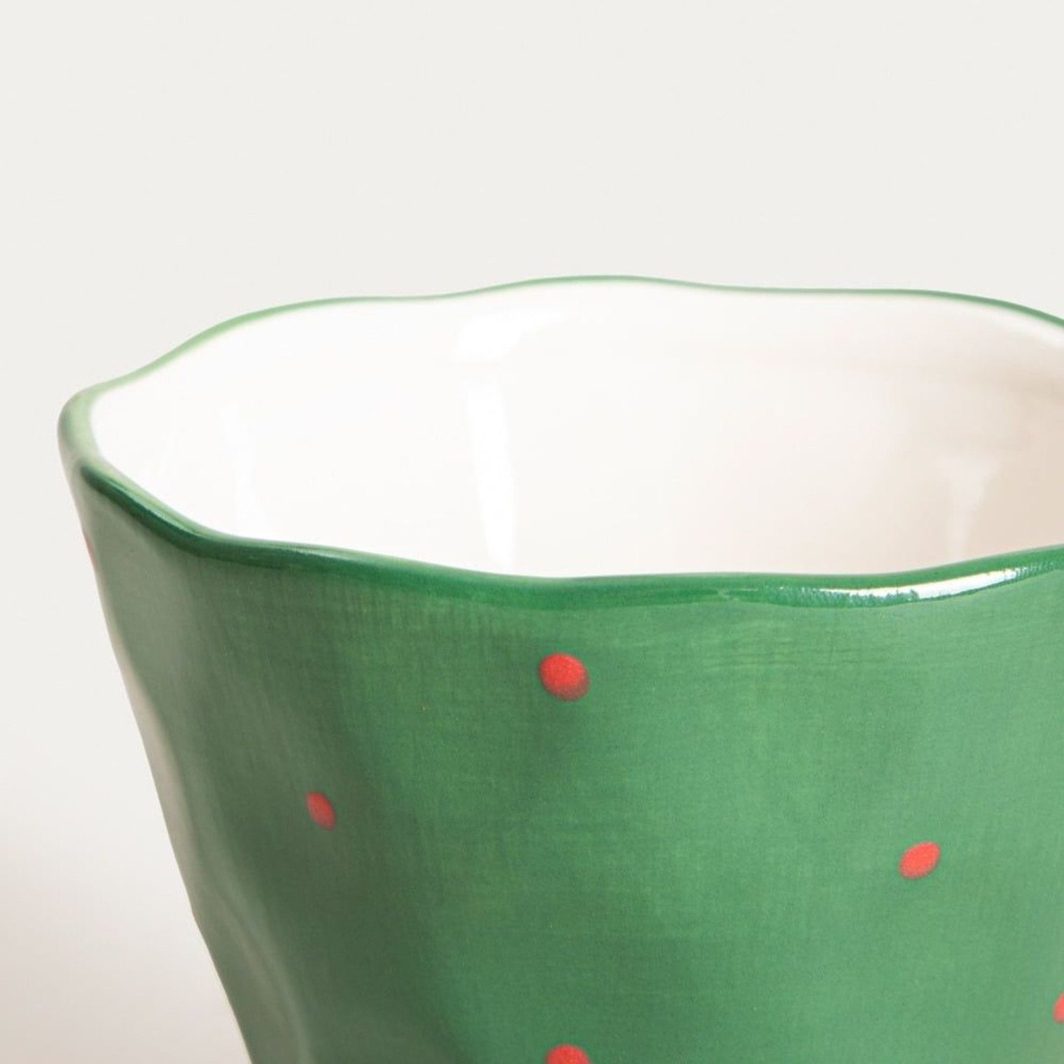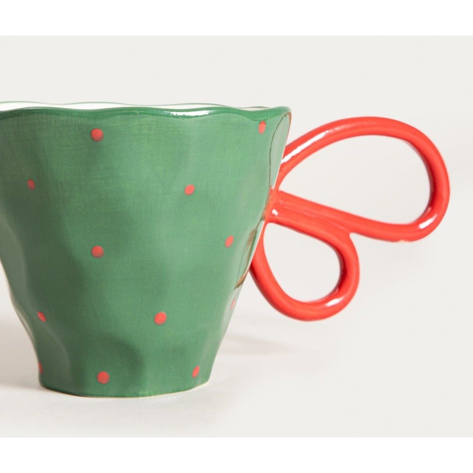 Стильний кухоль LISSA в унікальній колірній гамі привертає увагу та виділяється серед повсякденного посуду. Глибокий зелений колір у поєднанні з червоною ручкою створює сучасну комбінацію кольорів, що ідеально відповідає актуальним тенденціям в дизайні інтер'єру. Вона чудово доповнить як мінімалістичний, так і еклектичніший дизайн кухні або їдальні.