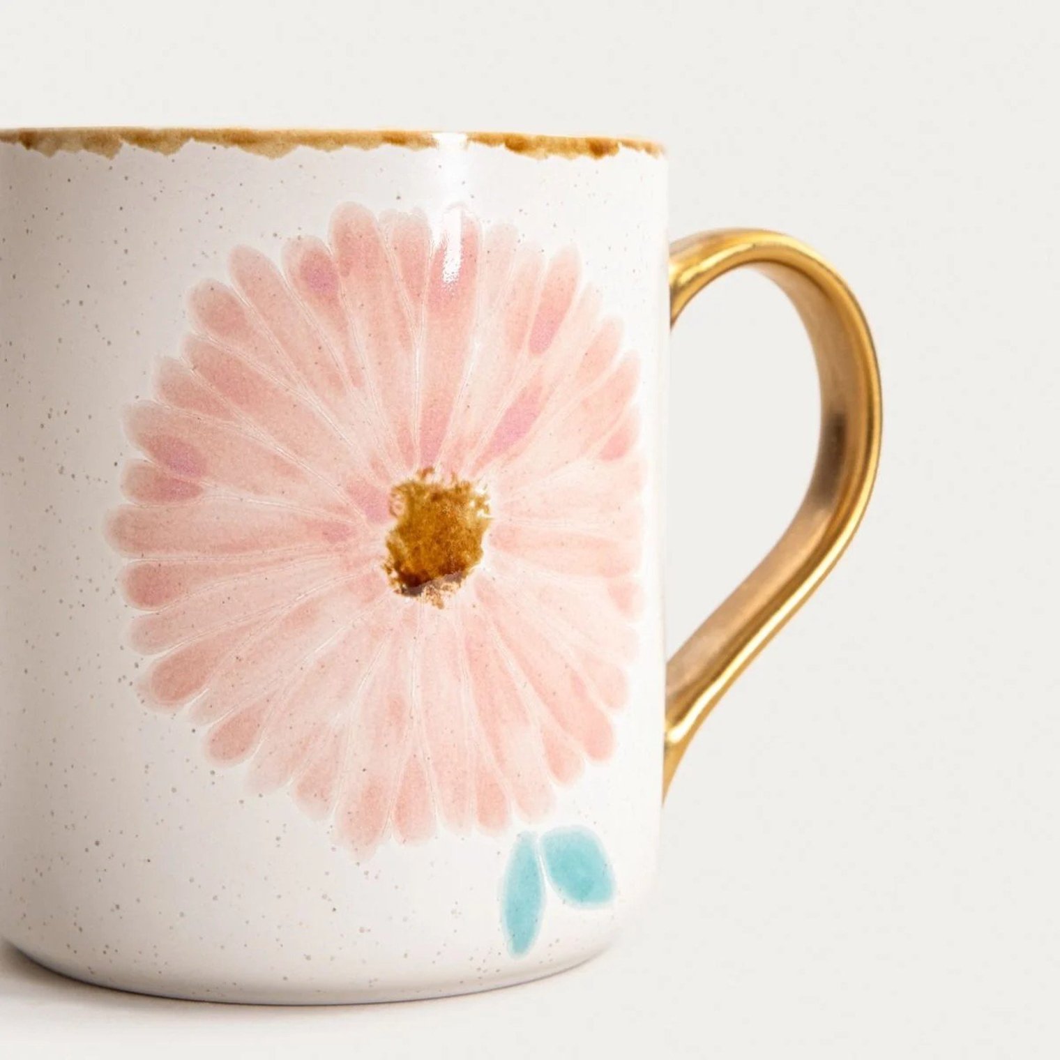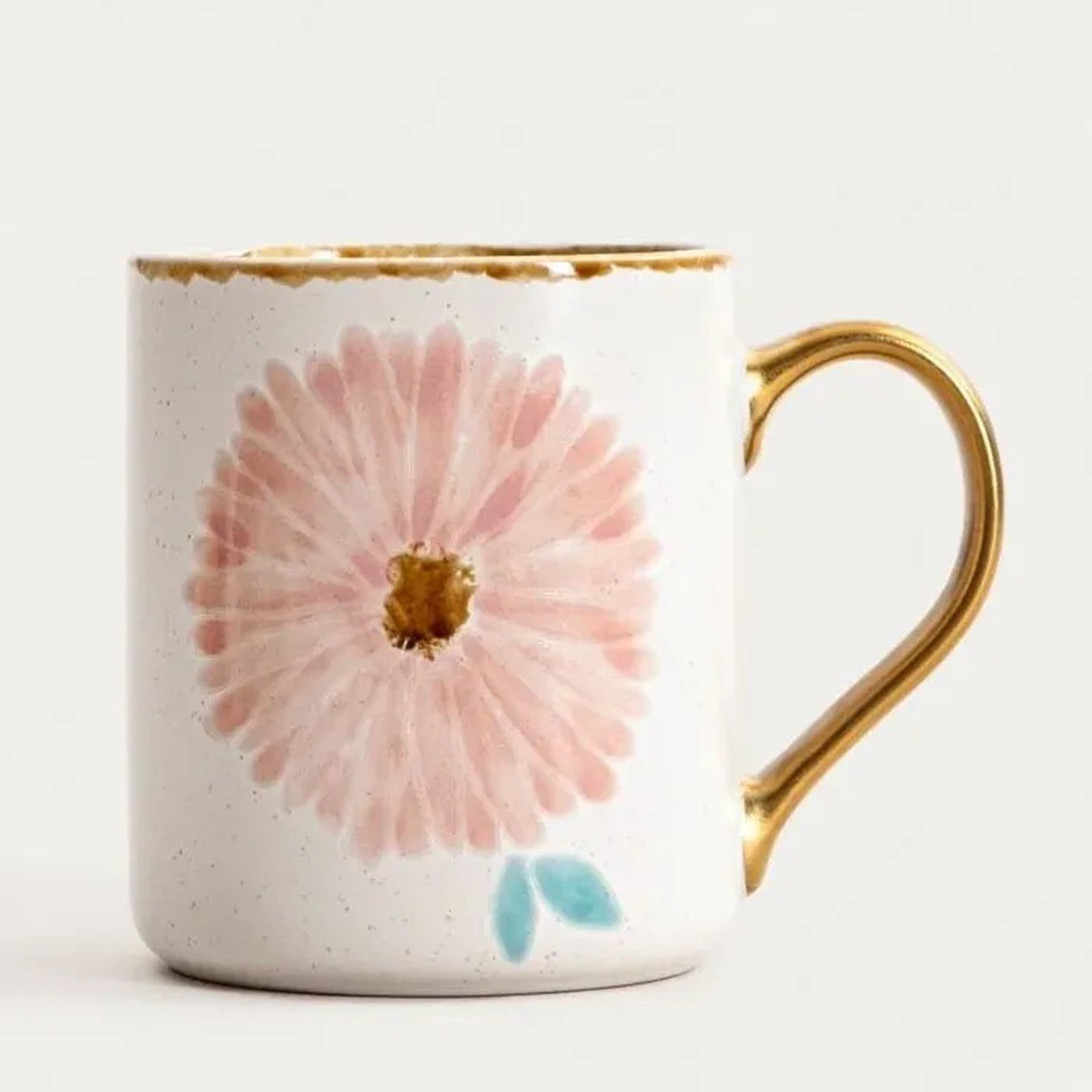 Кружка з рожевою квіткою та золотою ручкою, 0,5 л.