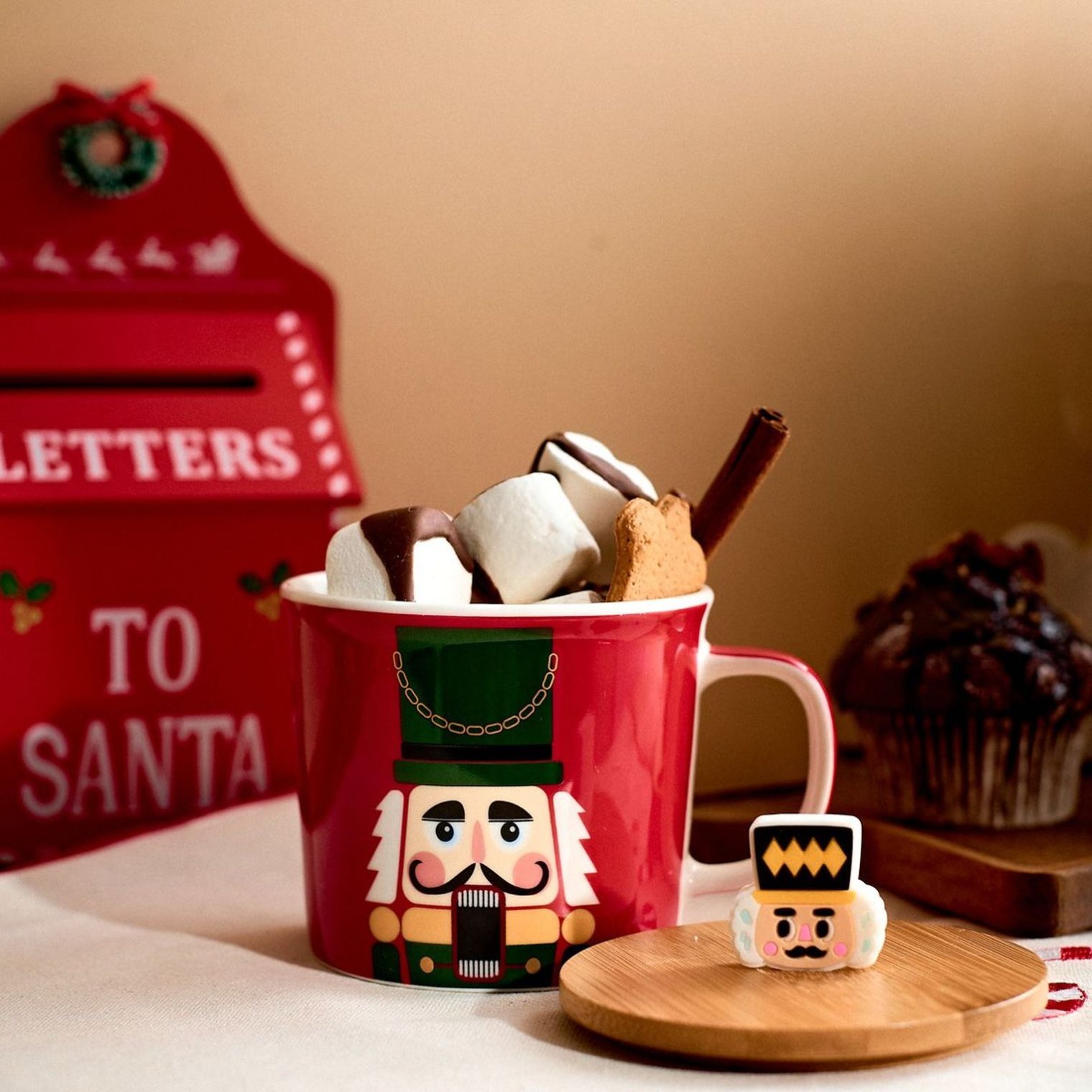 Цей різдвяний кухоль із зображенням Лускунчика — ідеальний вибір для зимових вечорів із гарячим шоколадом, кавою чи чаєм. На червоному тлі зображений класичний Лускунчик у зеленому мундирі з характерним чарівним виразом обличчя. Кухоль миттєво створить святковий настрій і нагадає про чарівну атмосферу Різдва.