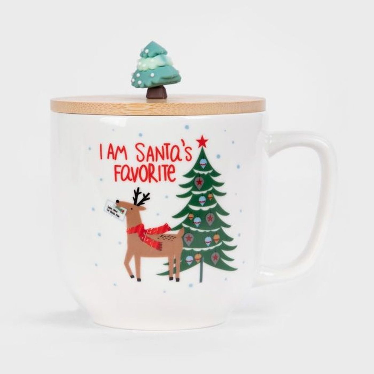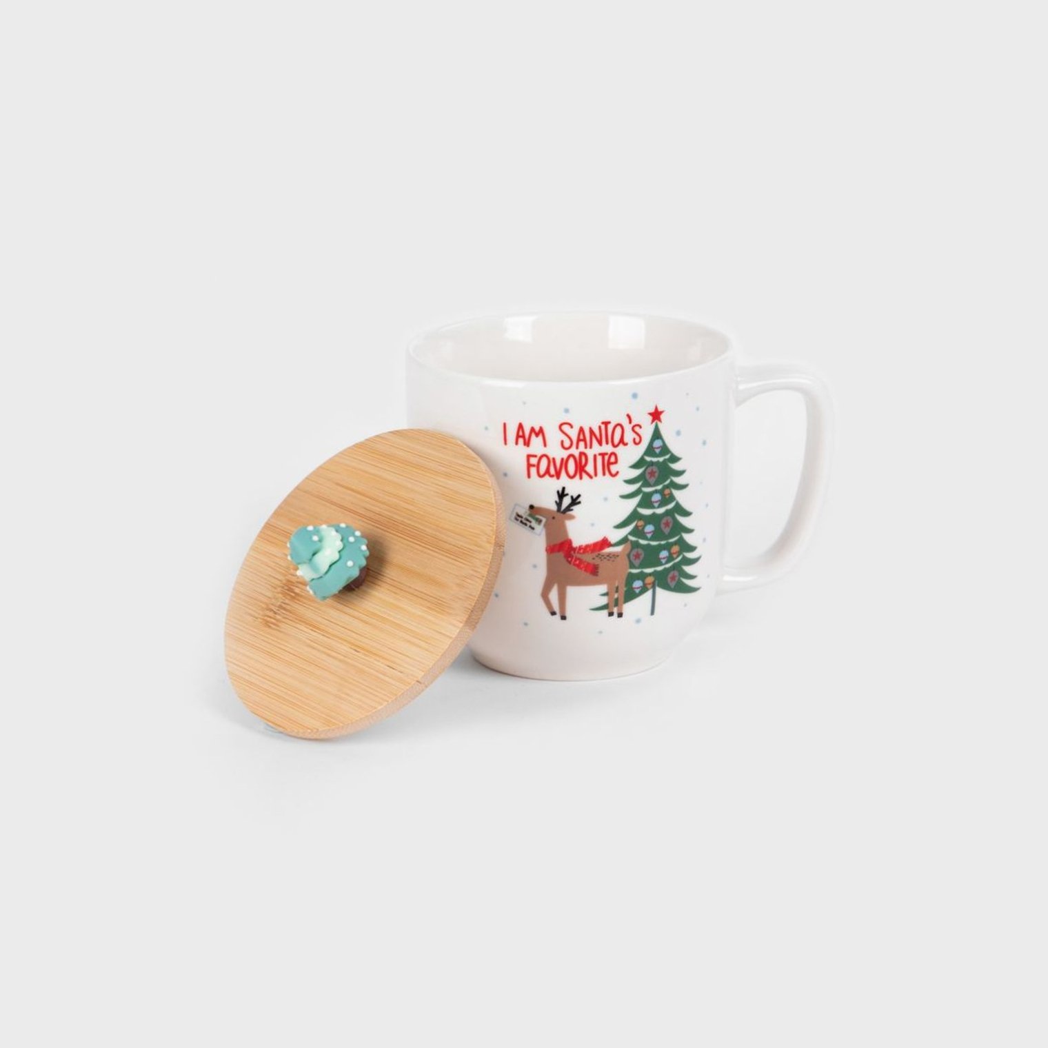 Чарівний кухоль MOLDY з дерев'яною кришкою і ручкою у формі Санта-Клауса. Велика біла ручка забезпечує зручне захоплення, а гарний візерунок додає чарівну чарівність. В цілому, дизайн гуртка створює чудову композицію, яка ідеально підходить для грудневих вечорів.