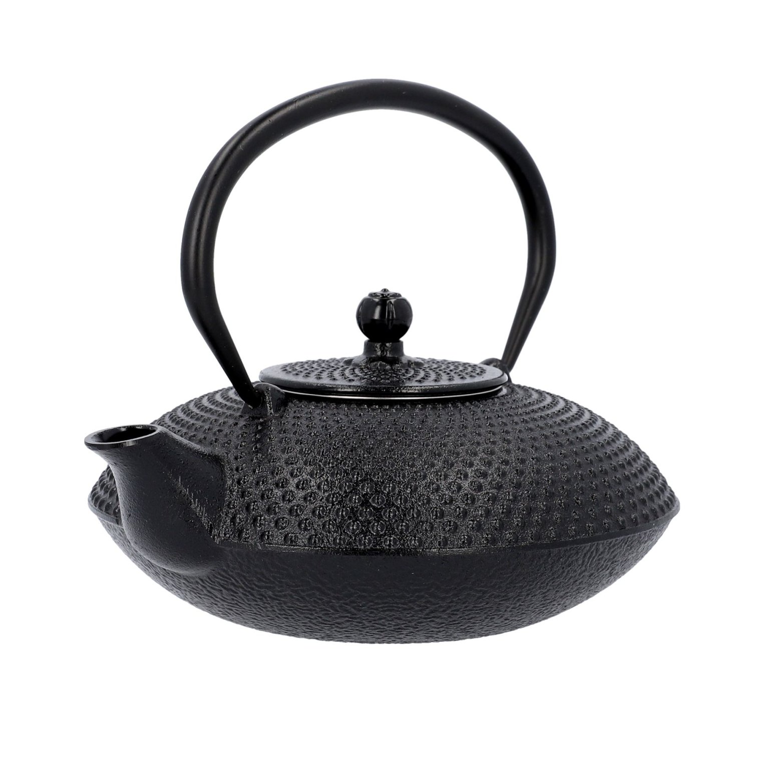 Чорний чайник ANDREAS має об'єм 0,8 літра. Він комплектується кришкою і металевим ситечком, що дає змогу легко заварювати чай і підтримувати його в чистоті. Він має злегка плескату форму, а його поверхня вкрита рельєфними точковими прикрасами.
