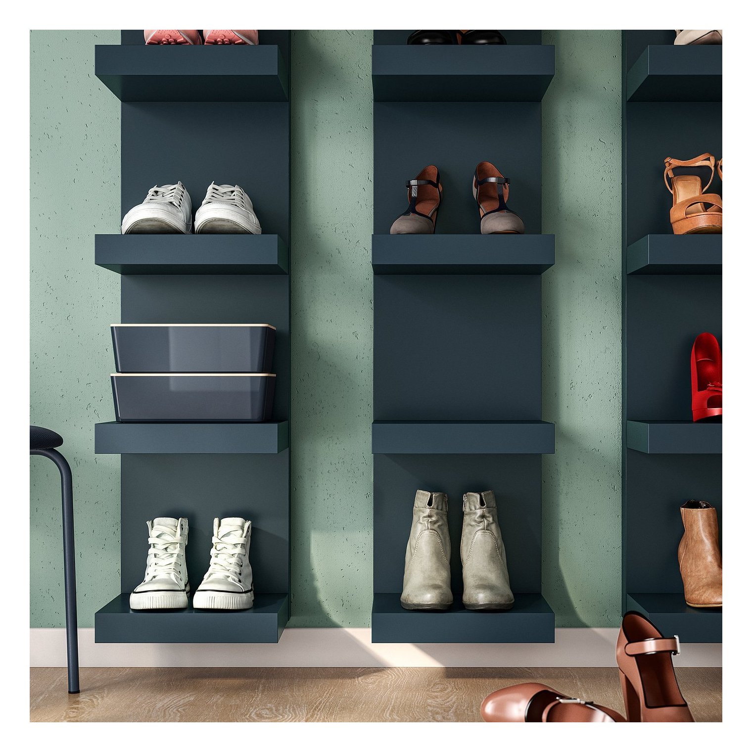 Неглибокі полиці дозволяють ефективно використовувати простір на стінах — на них можна розмістити багато речей, не займаючи занадто багато місця.