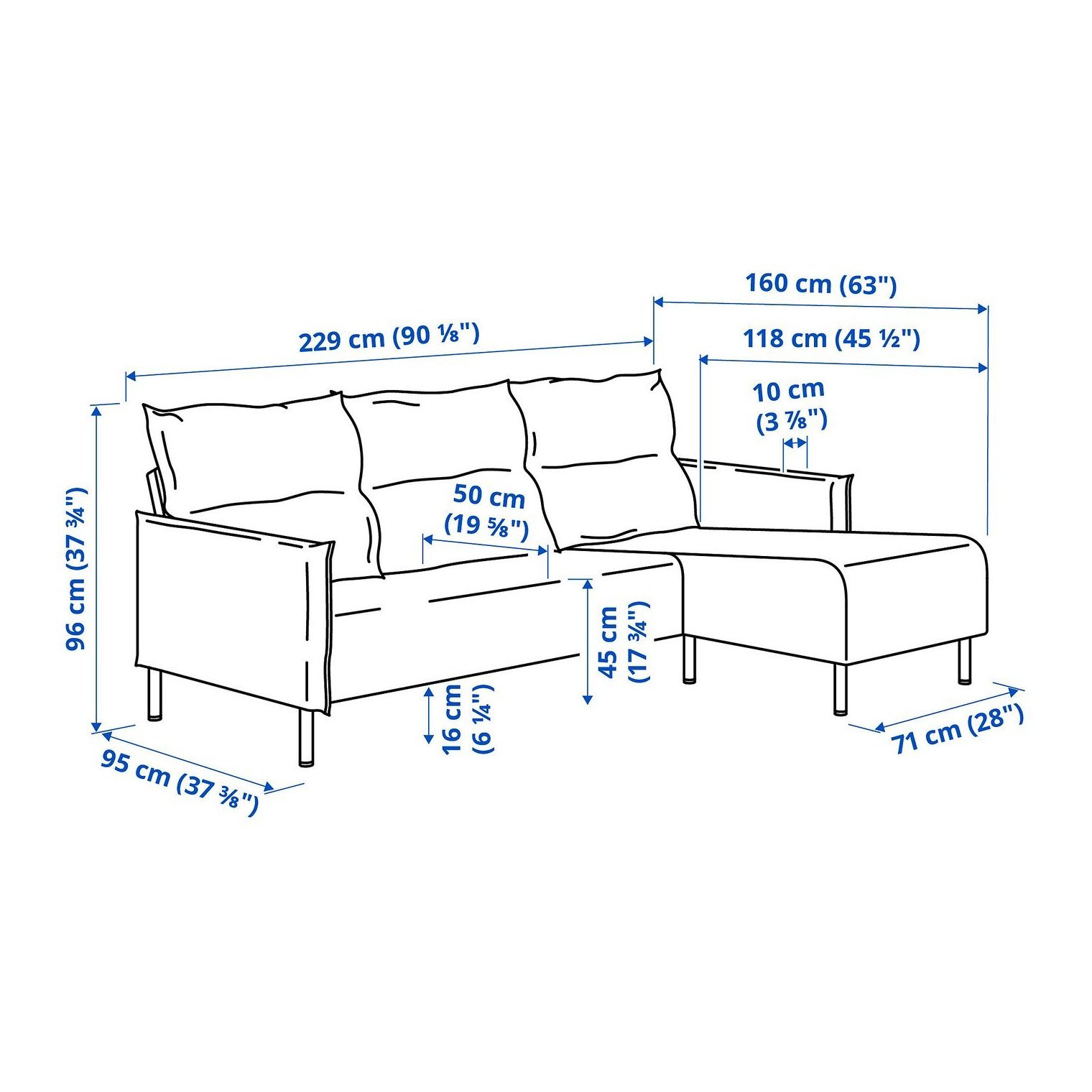Ширина сидіння: 209 см