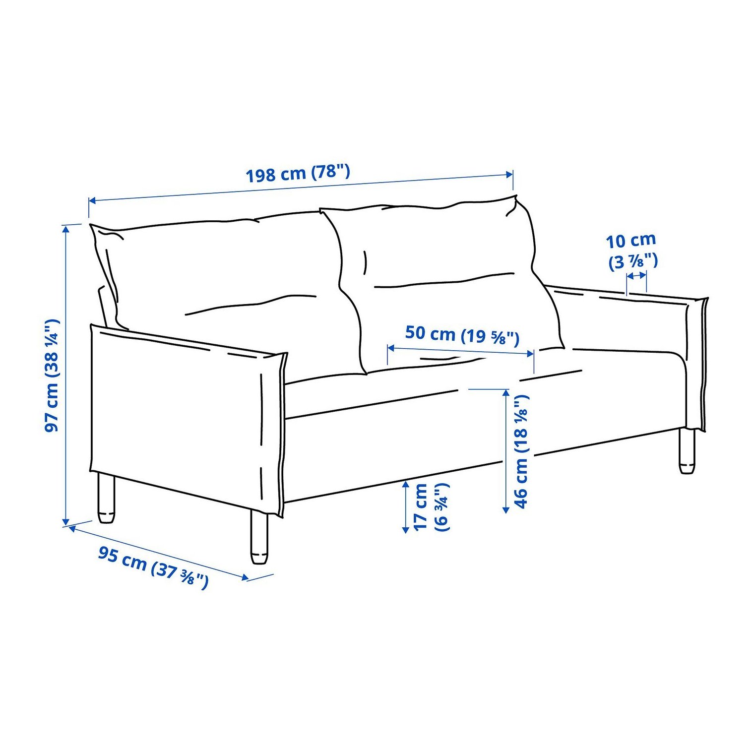Висота з подушками спинки: 97 см