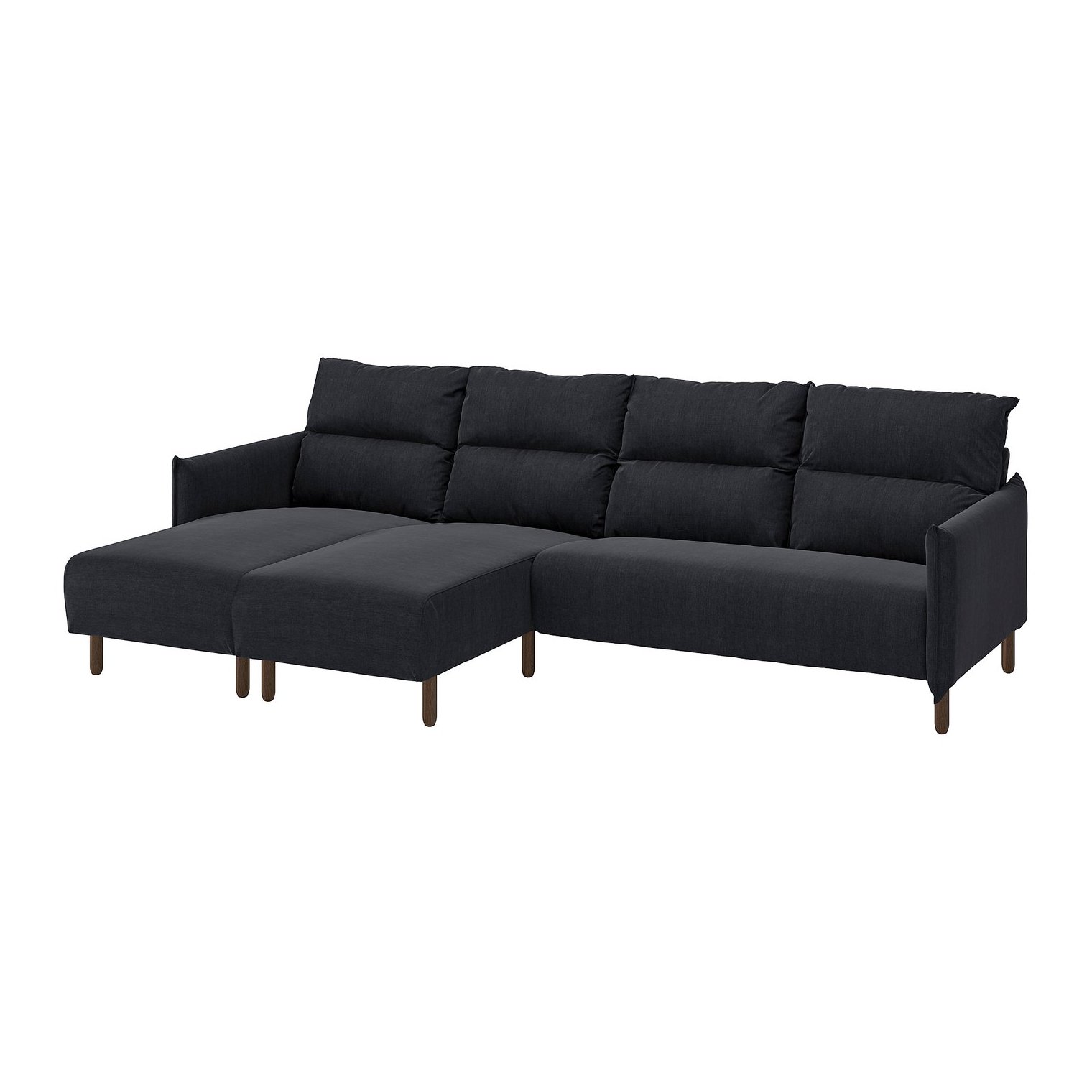Коричневі дерев'яні ніжки надають дивану природного, теплого вигляду.