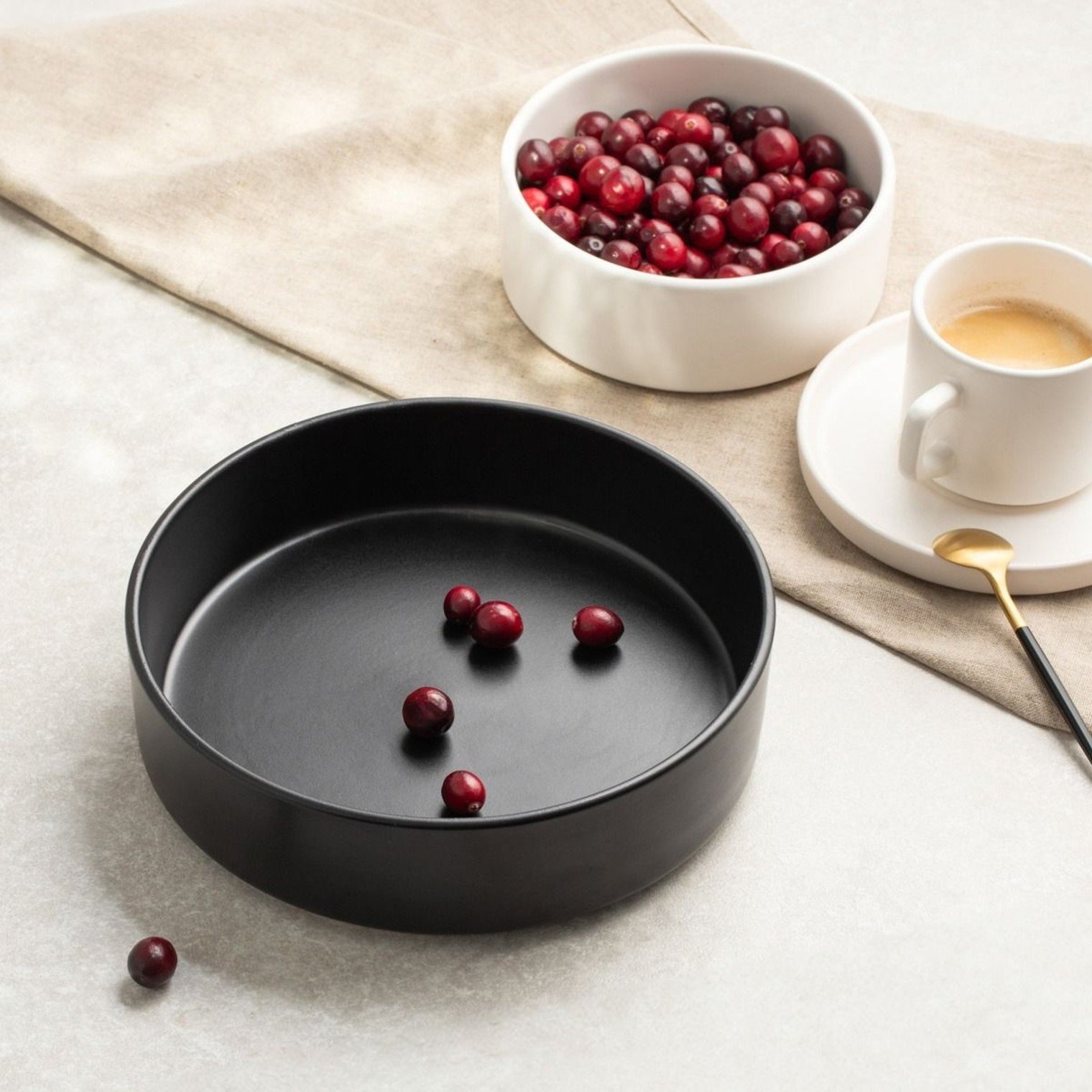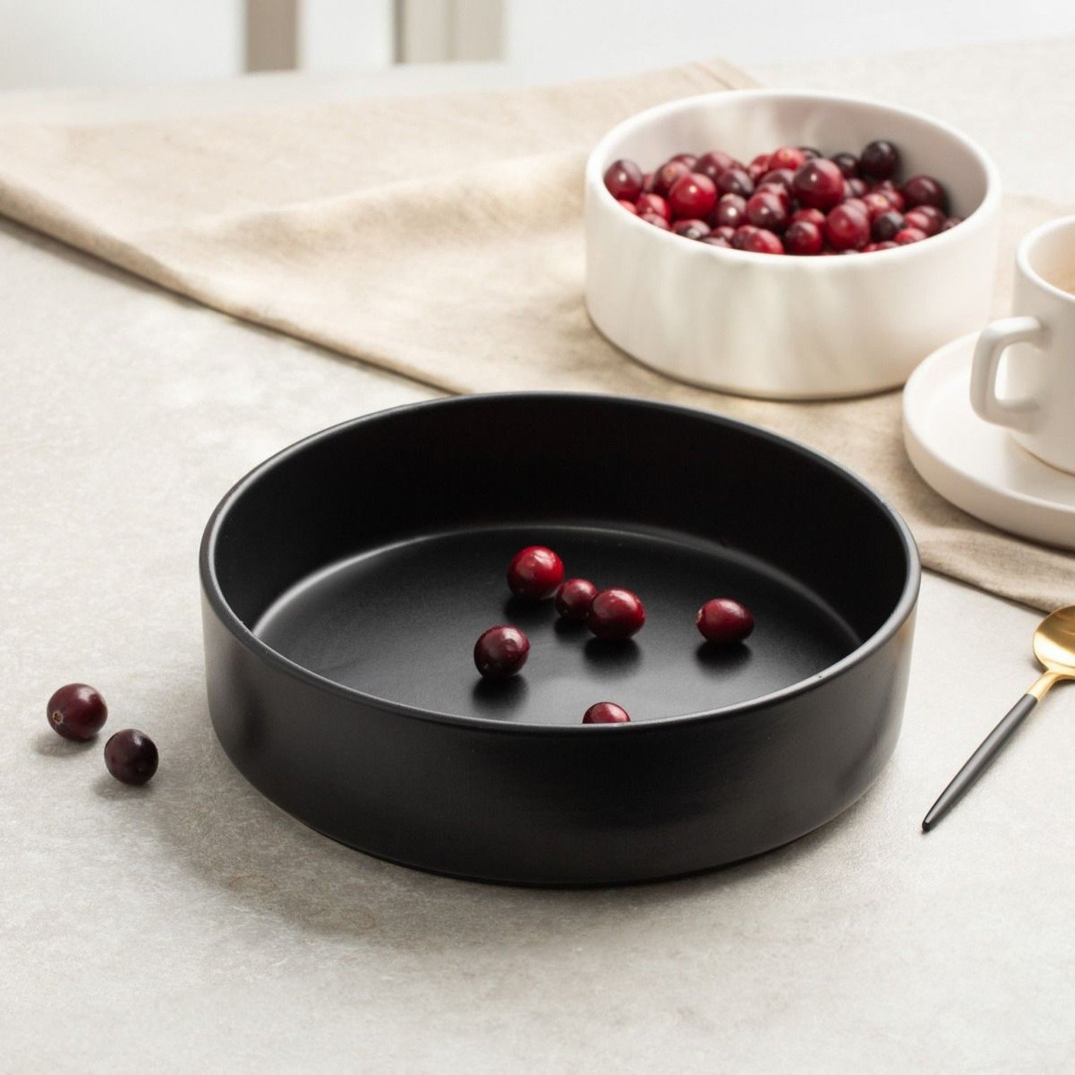 Чорна миска FAMELIO ідеально підійде тим, хто цінує мінімалістичні елегантні кухонні аксесуари. Вона відмінно підходить для подачі салатів, пасти та інших страв, будучи практичним та стильним доповненням до будь-якої їдальні.