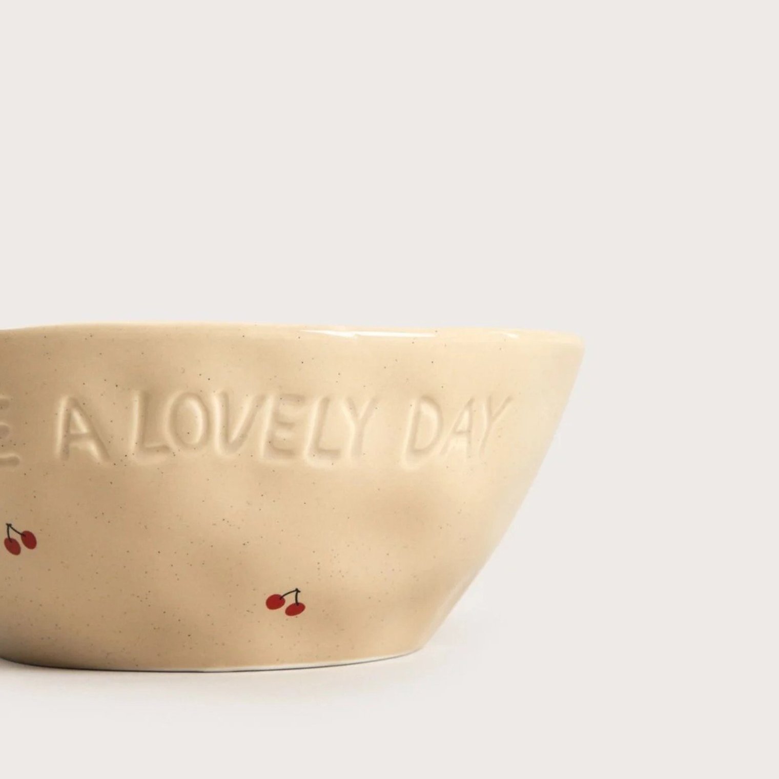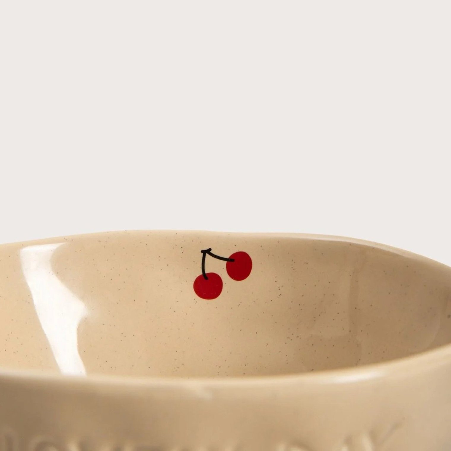 Ніжний колір, декоративний напис та невеликий фруктовий мотив надають фарфоровій чаші ISERNIA приємної, життєрадісної атмосфери. Бежевий фарфор добре поєднується зі світлим посудом та натуральними аксесуарами, а витончені вишні додають легкості. Чаша естетично приваблива як для повсякденних прийомів їжі, так і для святкових зустрічей із близькими.
