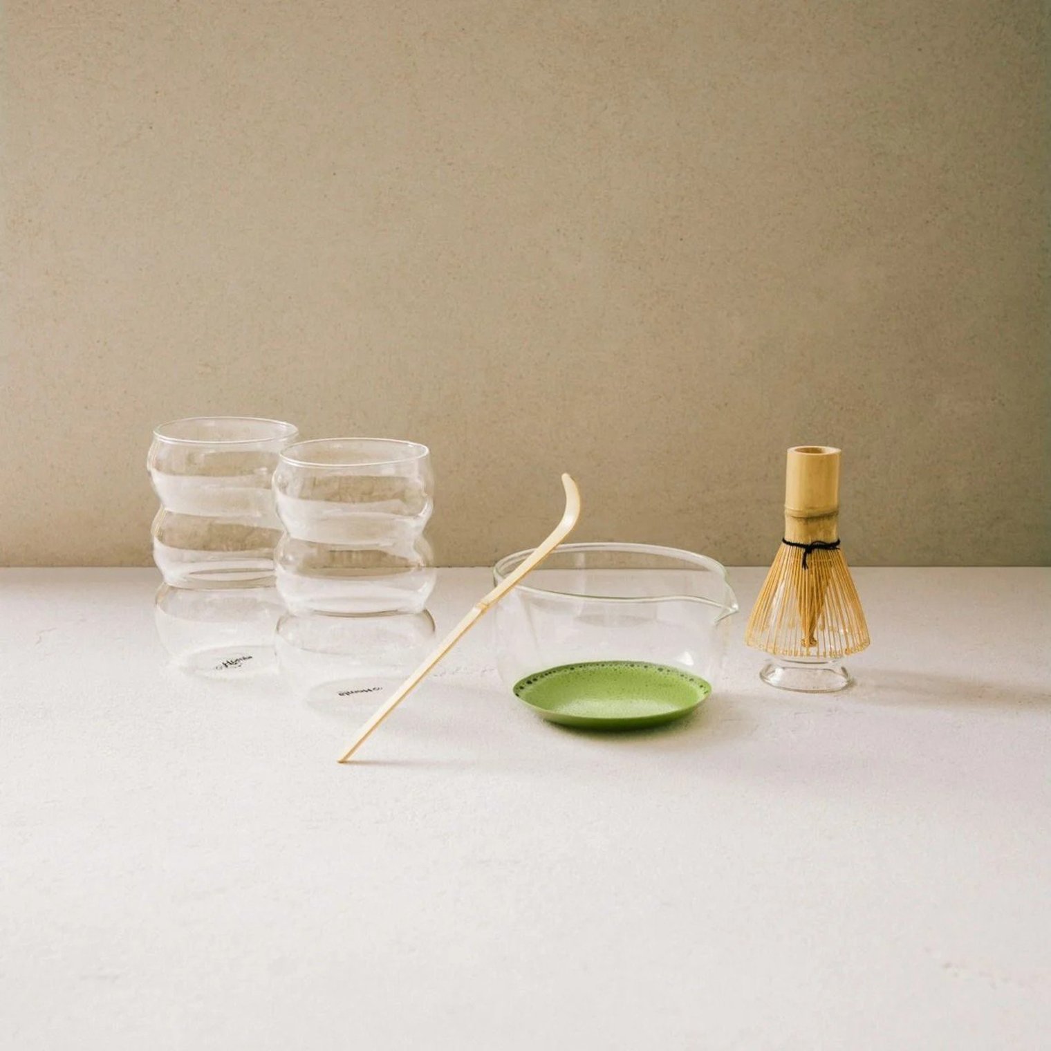 Набір для приготування матчу IZANAMI із 6 предметів відрізняється високою якістю матеріалів. Чашки та підставка для віночка виготовлені зі скла. Віночок та мішалка зроблені з натурального бамбука, що традиційно використовується в аксесуарах для матчу.