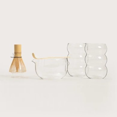 - У набір входять: чаша для матчу (600 мл), 2 склянки для матчу (550 мл), віночок, підставка для віночка, ложка