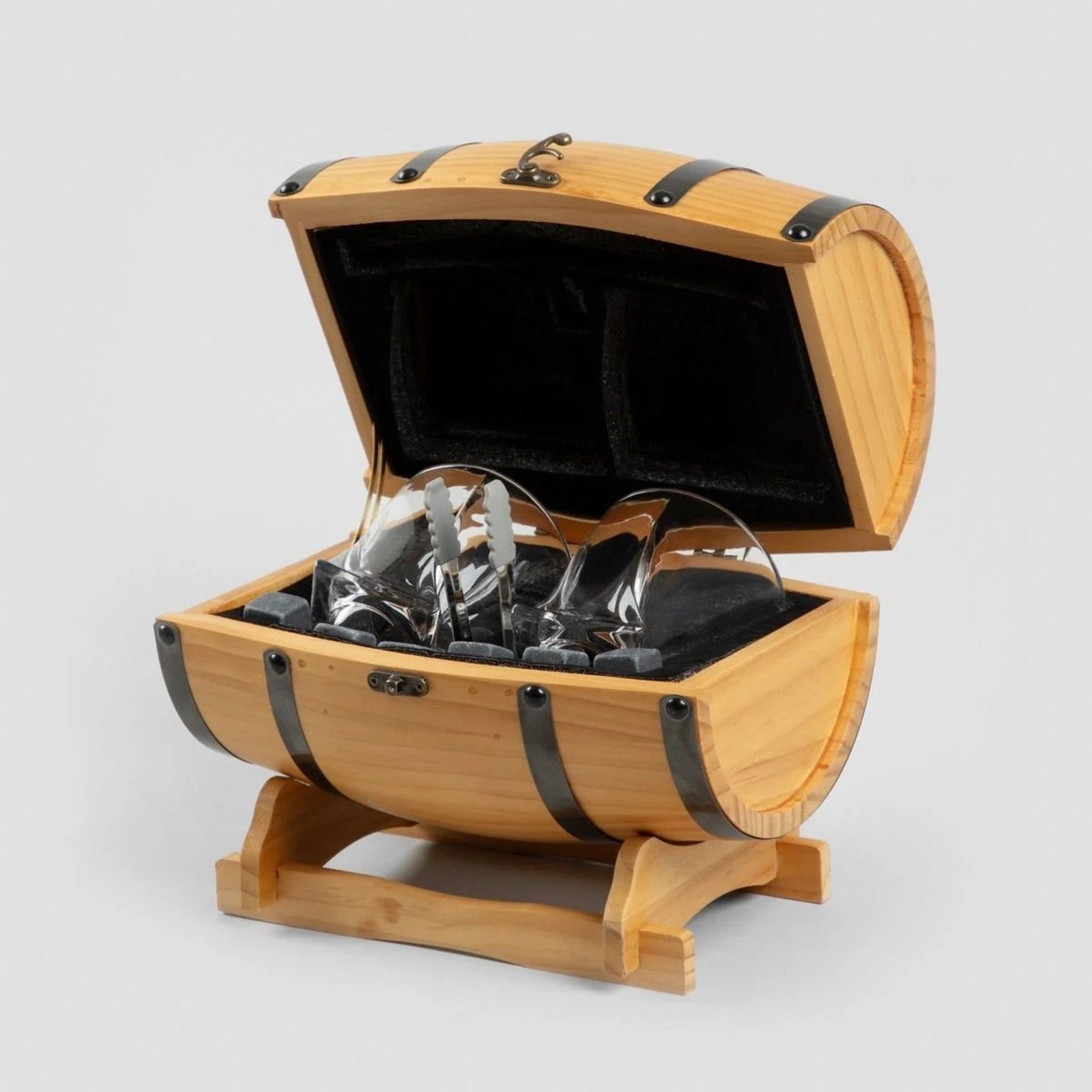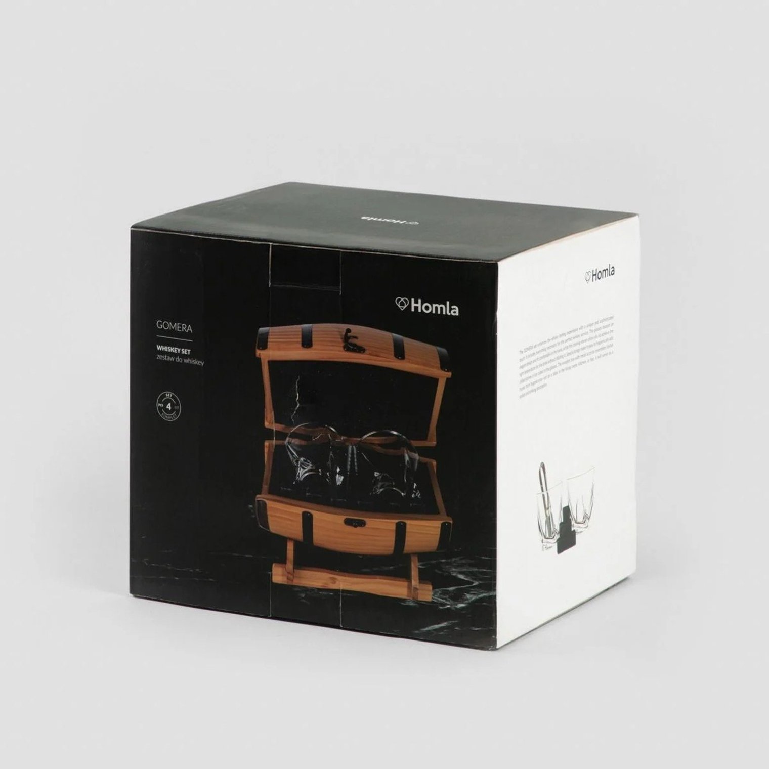 Набір GOMERA - чудовий вибір для цінителів віскі, які цінують не лише смак, а й стиль. Дерев'яна бочка з металевими елементами надає йому ексклюзивного вигляду, роблячи його не тільки функціональним, але й ефектним доповненням до домашнього бару.