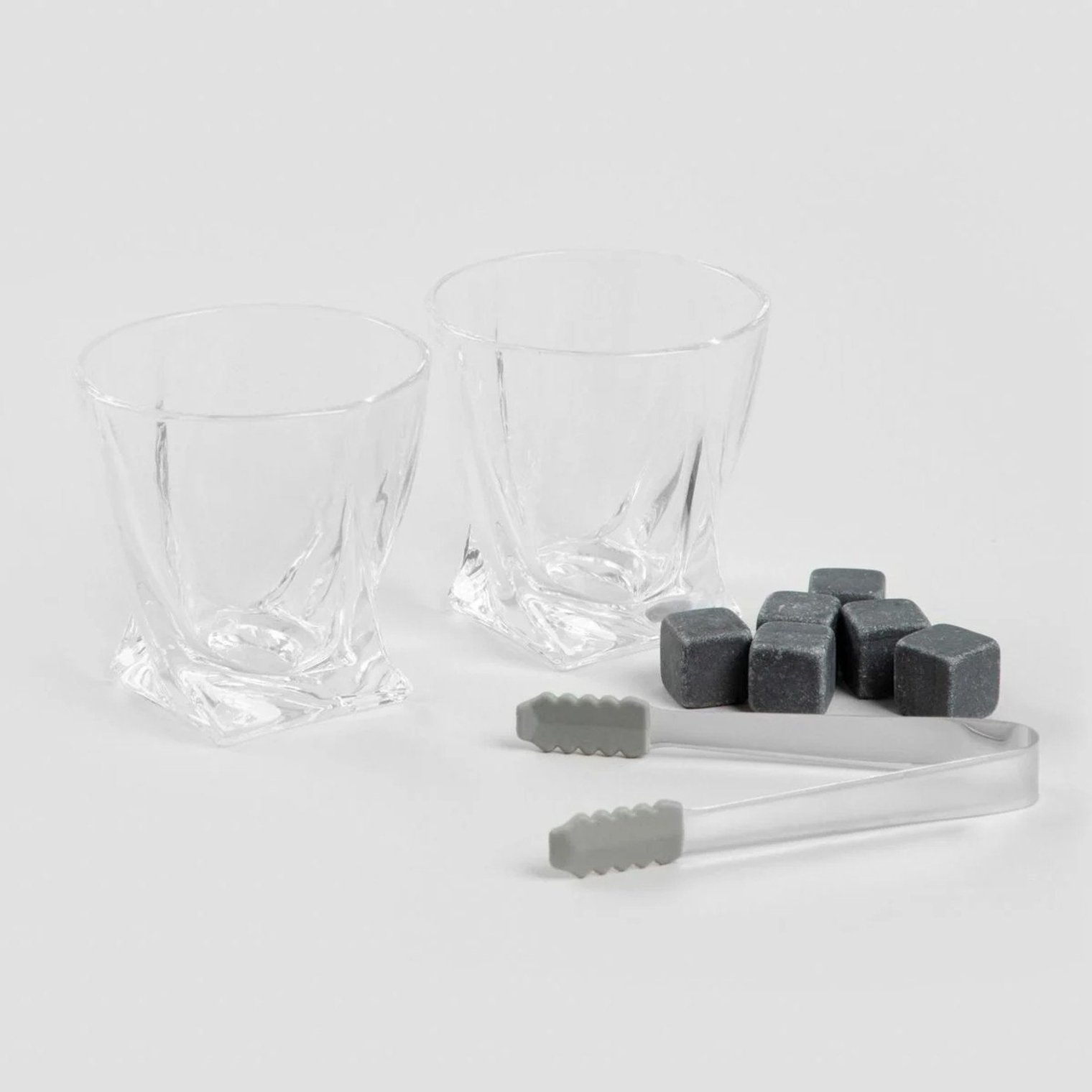 Цей набір ідеально підходить для подачі віскі та інших вишуканих алкогольних напоїв. Кам'яні кубики охолоджують напій, не розбавляючи його водою, а міцне скло наголошує на елегантності дегустації. Він стане чудовим подарунком для будь-якого поціновувача віскі.