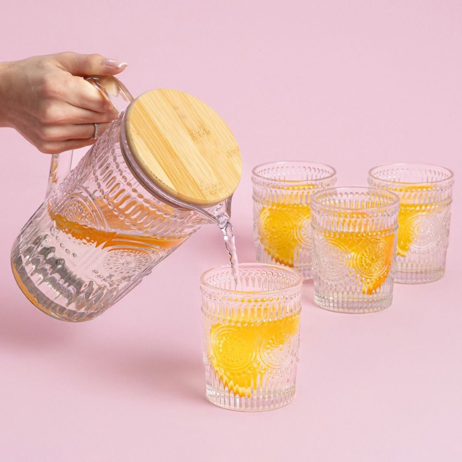 Цей набір ідеально підходить для подачі води, соку або лимонаду, наголошуючи на неповторному характері будь-якої страви. Міцне скло та зручні ручки забезпечують комфорт, а класичний дизайн доповнить будь-яке сервірування столу.