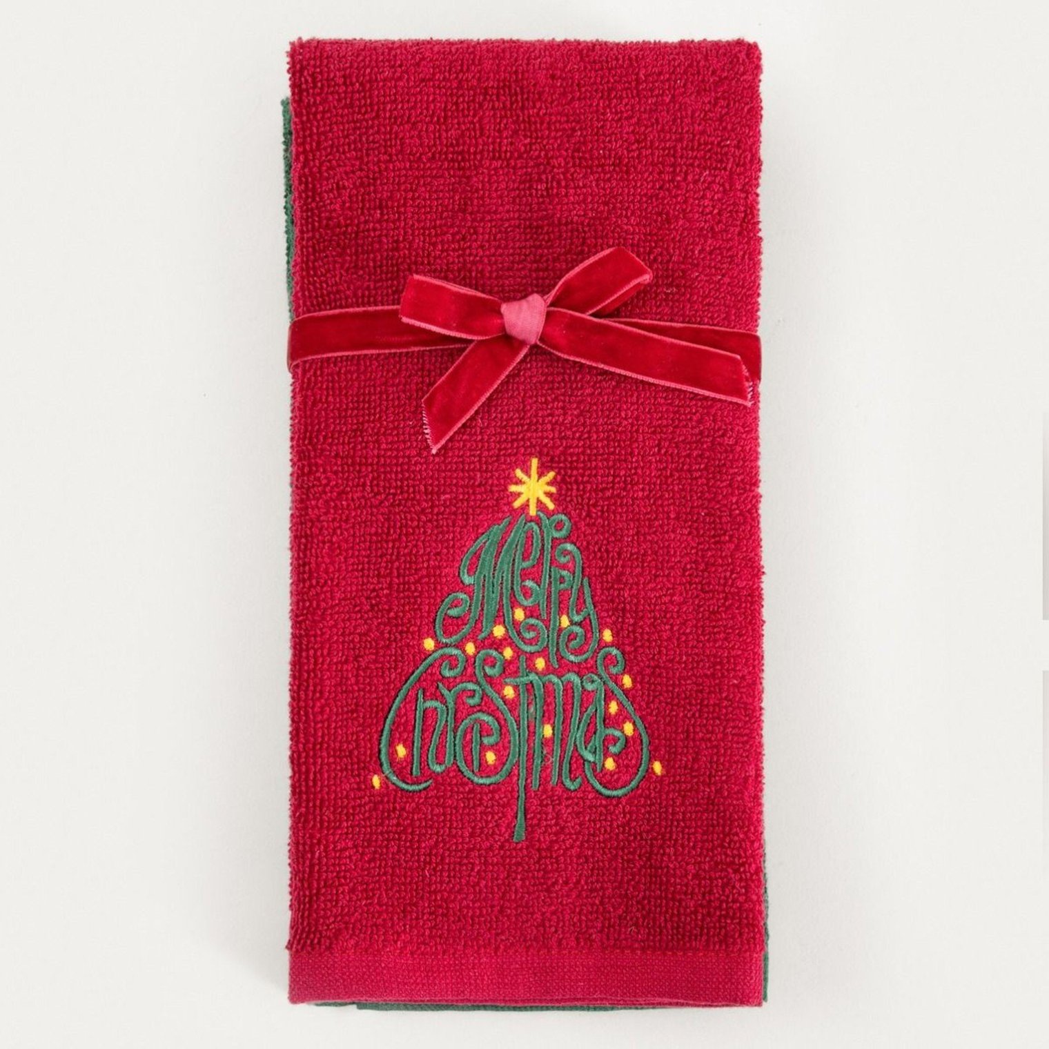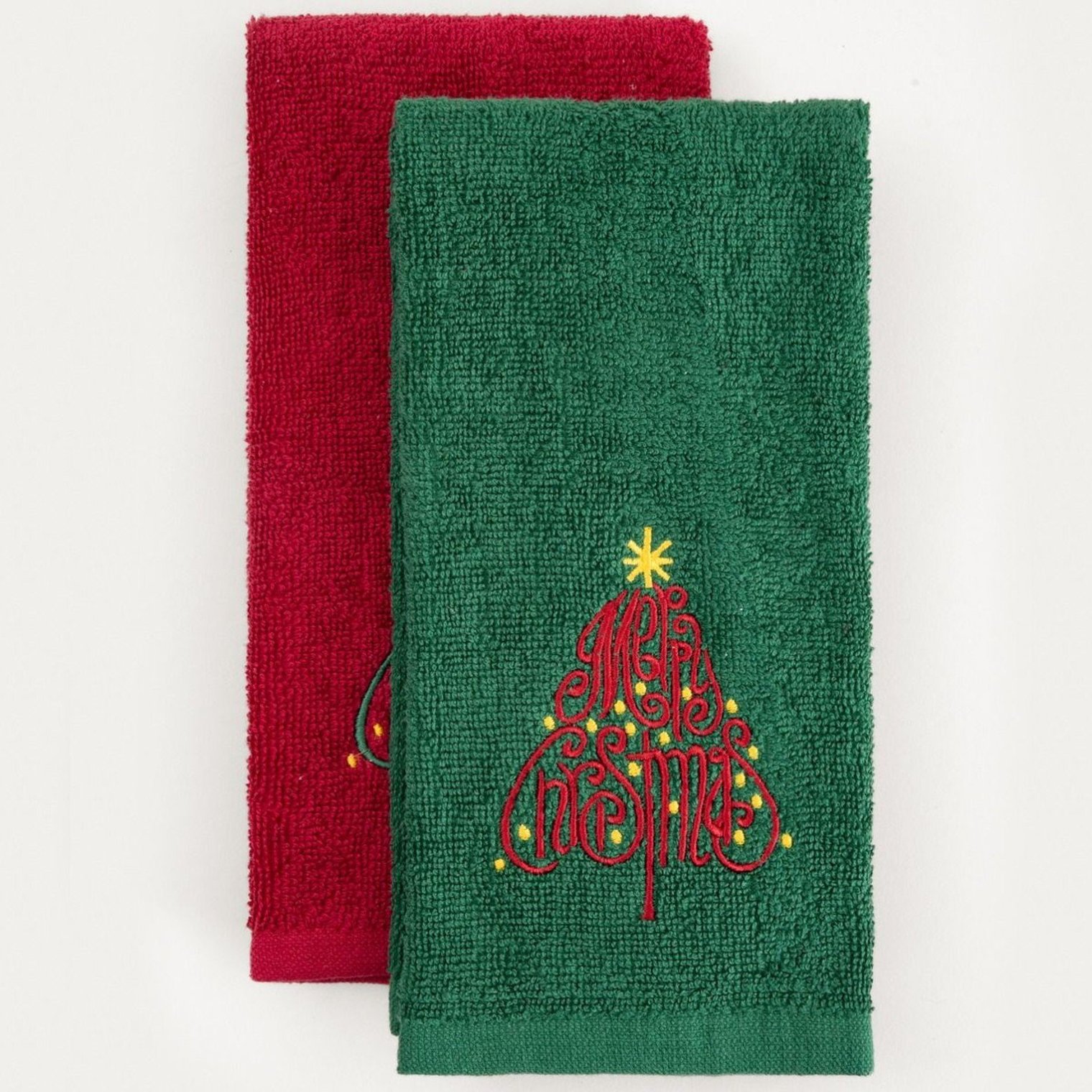 Різдвяні рушники, 2 шт., бордового кольору з візерунком «Різдвяна ялинка».