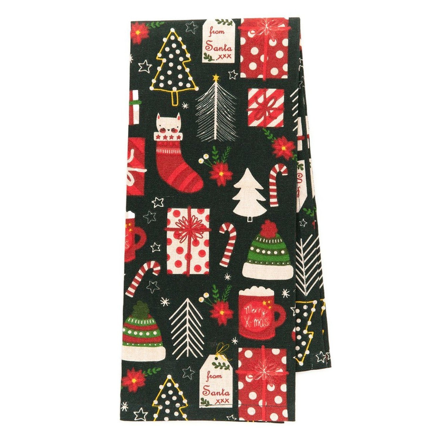 Один рушник прикрашений подарунковим малюнком, а інший – однотонний зеленого кольору. Акуратно прошиті краї забезпечують довговічність. Вони стануть у нагоді не тільки в передсвятковий період, але і стануть прекрасною прикрасою кухні в період Різдва та Нового року. У комплект входять два бавовняні рушники розміром 45 х 65 см.