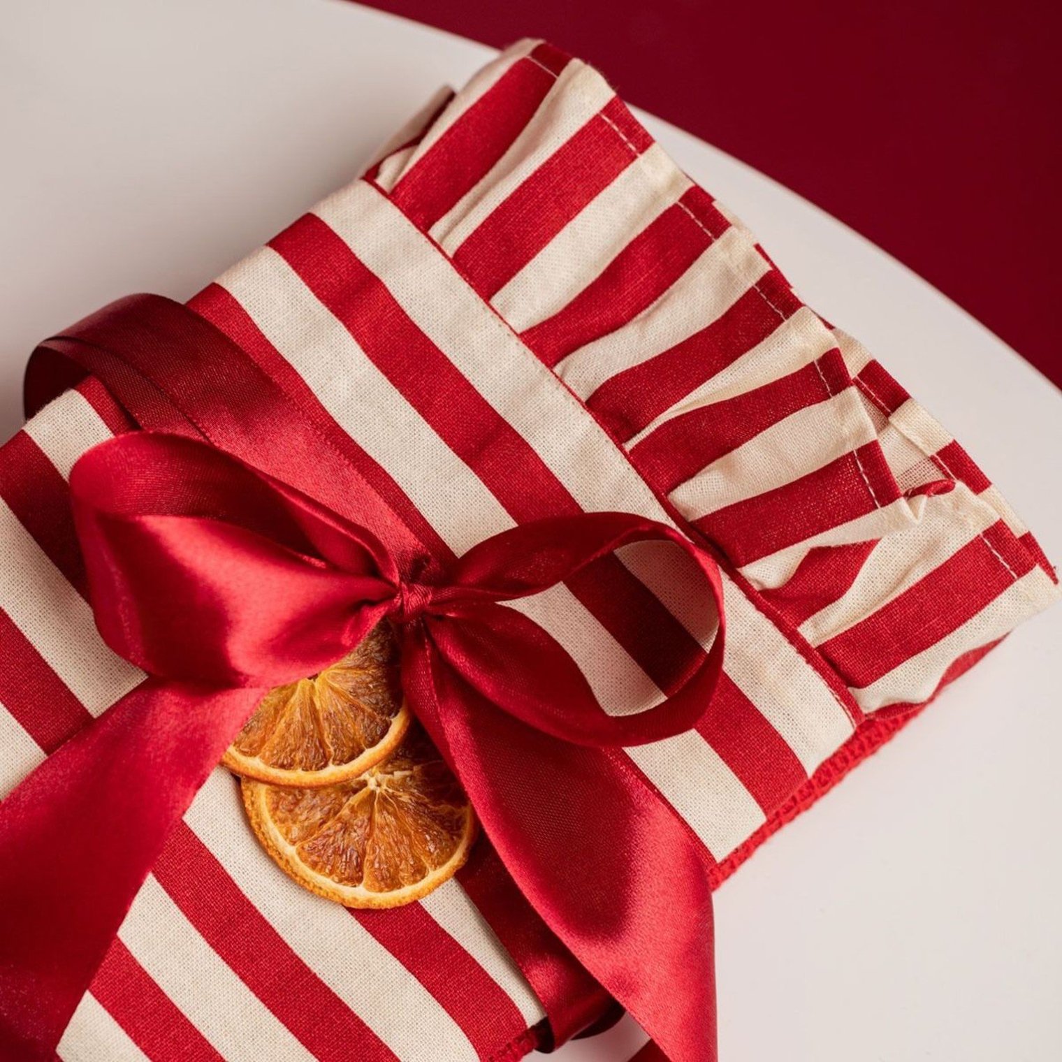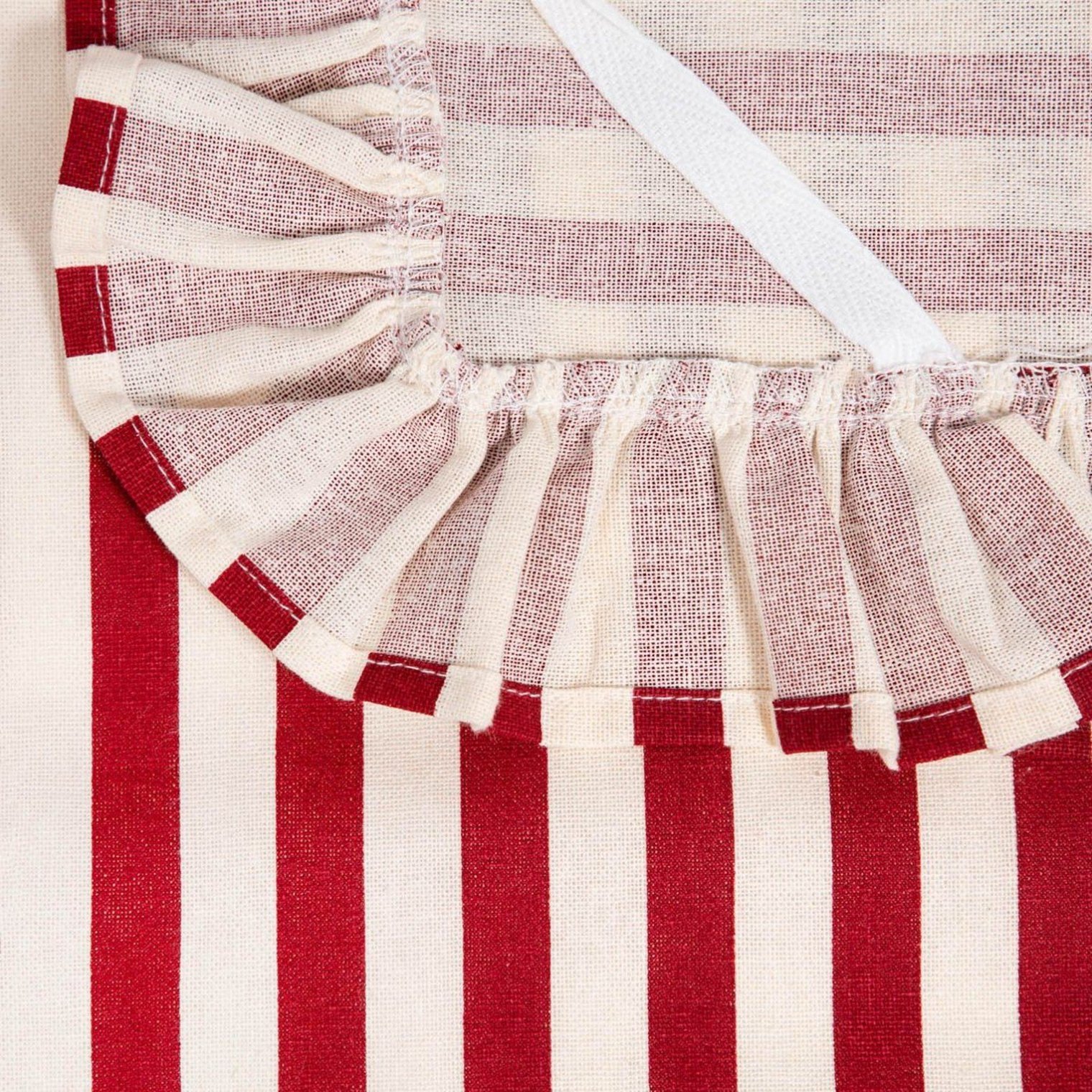 - Стильні червоні смужки з декоративною оборкою