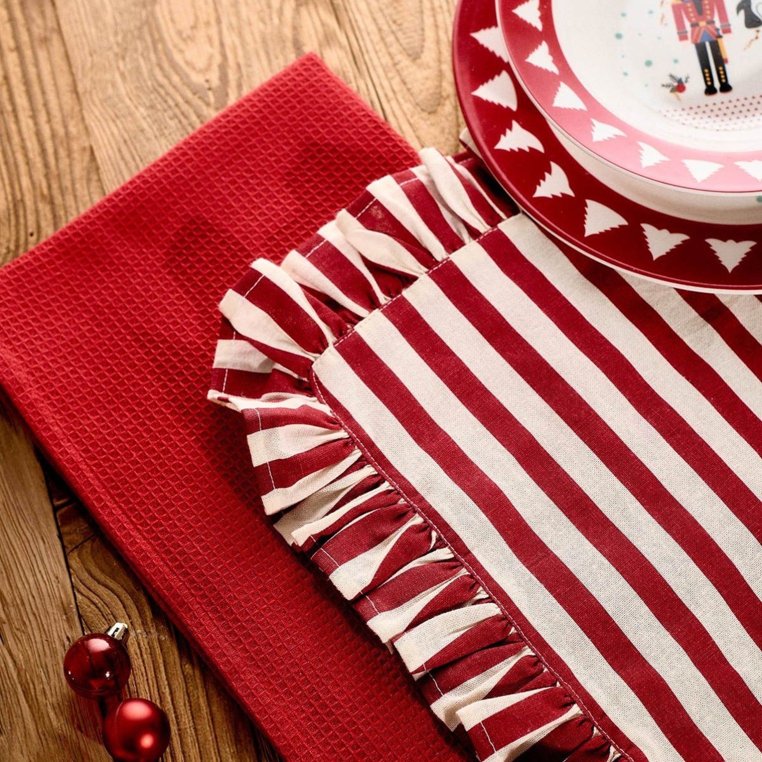 Різдвяні кухонні рушники, 2 шт., вафельне та з оборкою.