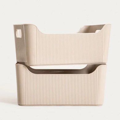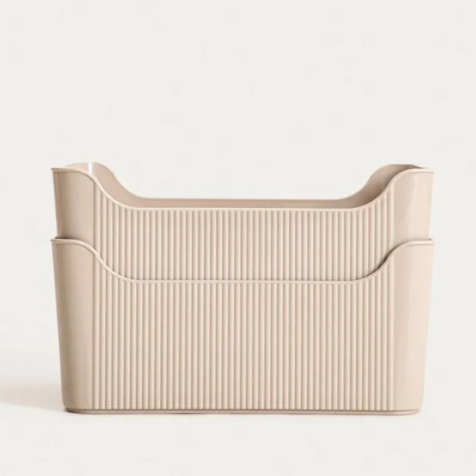Набір органайзерів DIALL - це функціональне та естетичне рішення, яке дозволяє легко підтримувати порядок у ванній або кухні. Ніжна бежева кольорова гама у поєднанні з вертикальними канавками надає органайзерам елегантного сучасного вигляду, ідеально доповнюючи мінімалістичні та скандинавські інтер'єри.