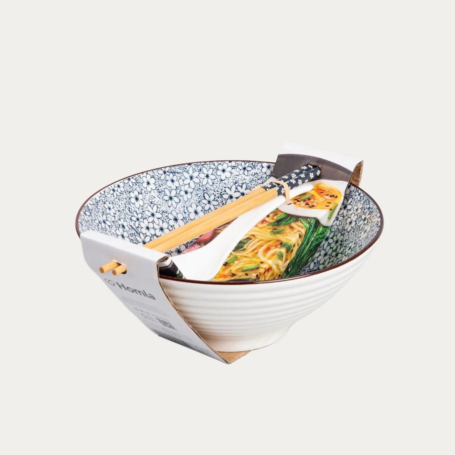 Набір для приготування рамена SALADO з квітами та коричневою облямівкою, 21 см.