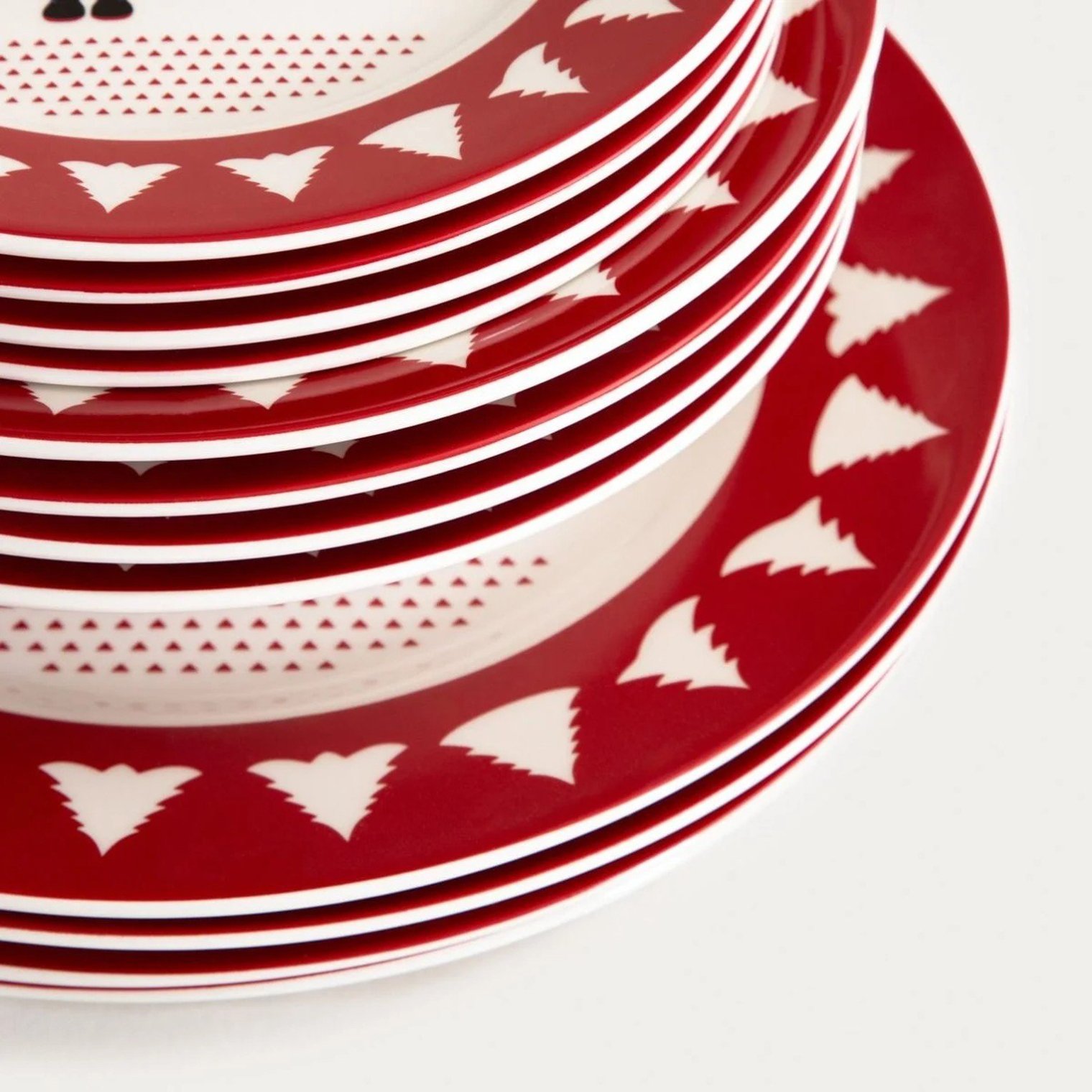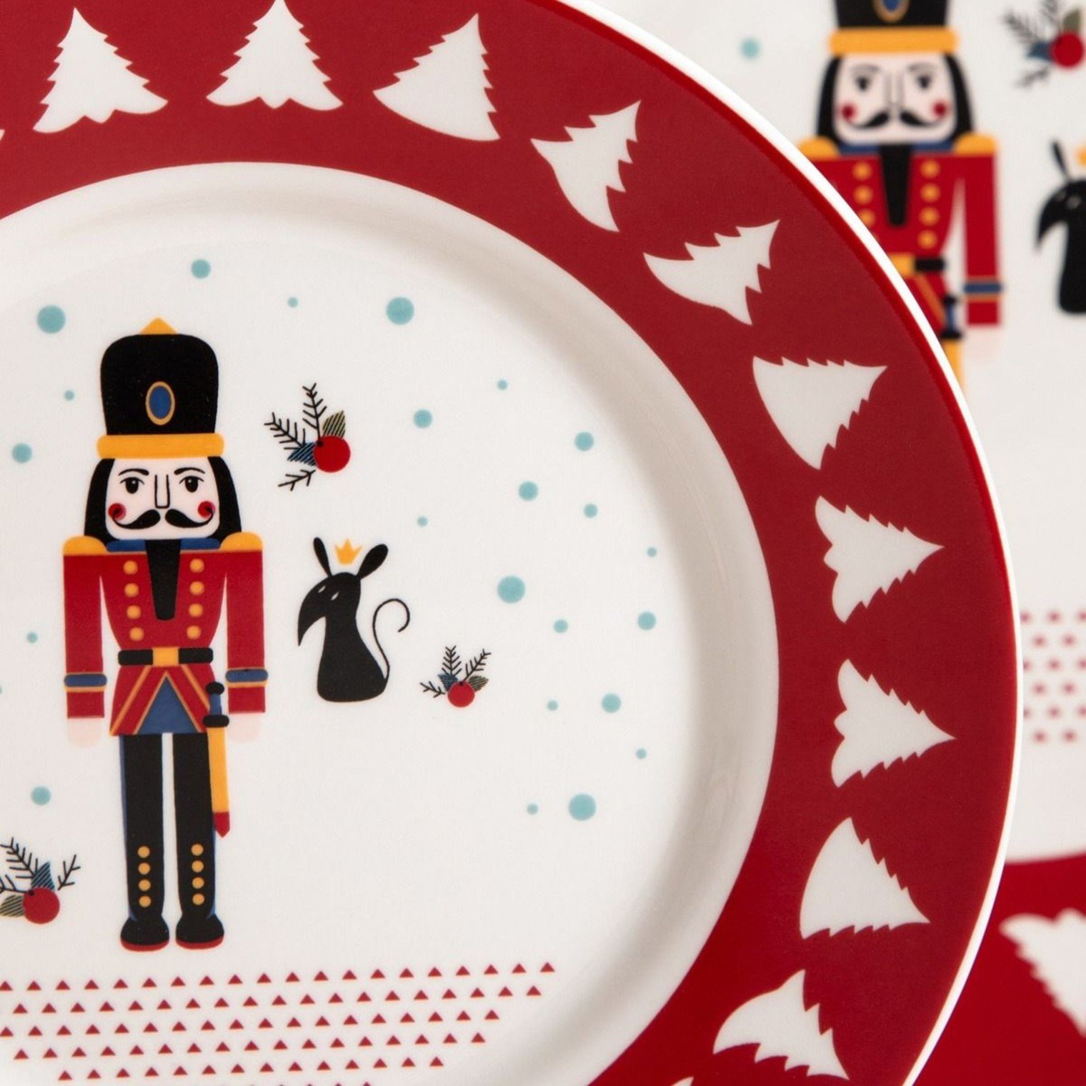 Цей набір виконаний в оригінальному святковому стилі в червоних тонах. Чарівний декоративний мотив на тарілках нагадує про казку «Лускунчик». Цей набір чудово виглядатиме на святковому столі, а страви будуть виглядати ще апетитнішими.