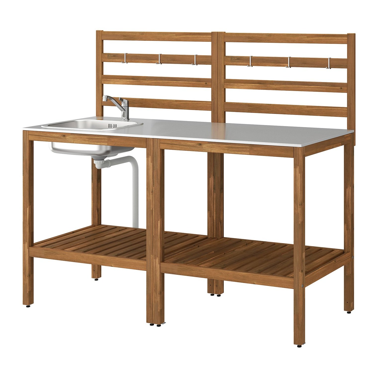 Практична задня панель додає чарівності та функціональності садової кухні NÄMMARÖ. На ній можна повісити гачки для кухонного начиння або використовувати його як декоративний елемент.