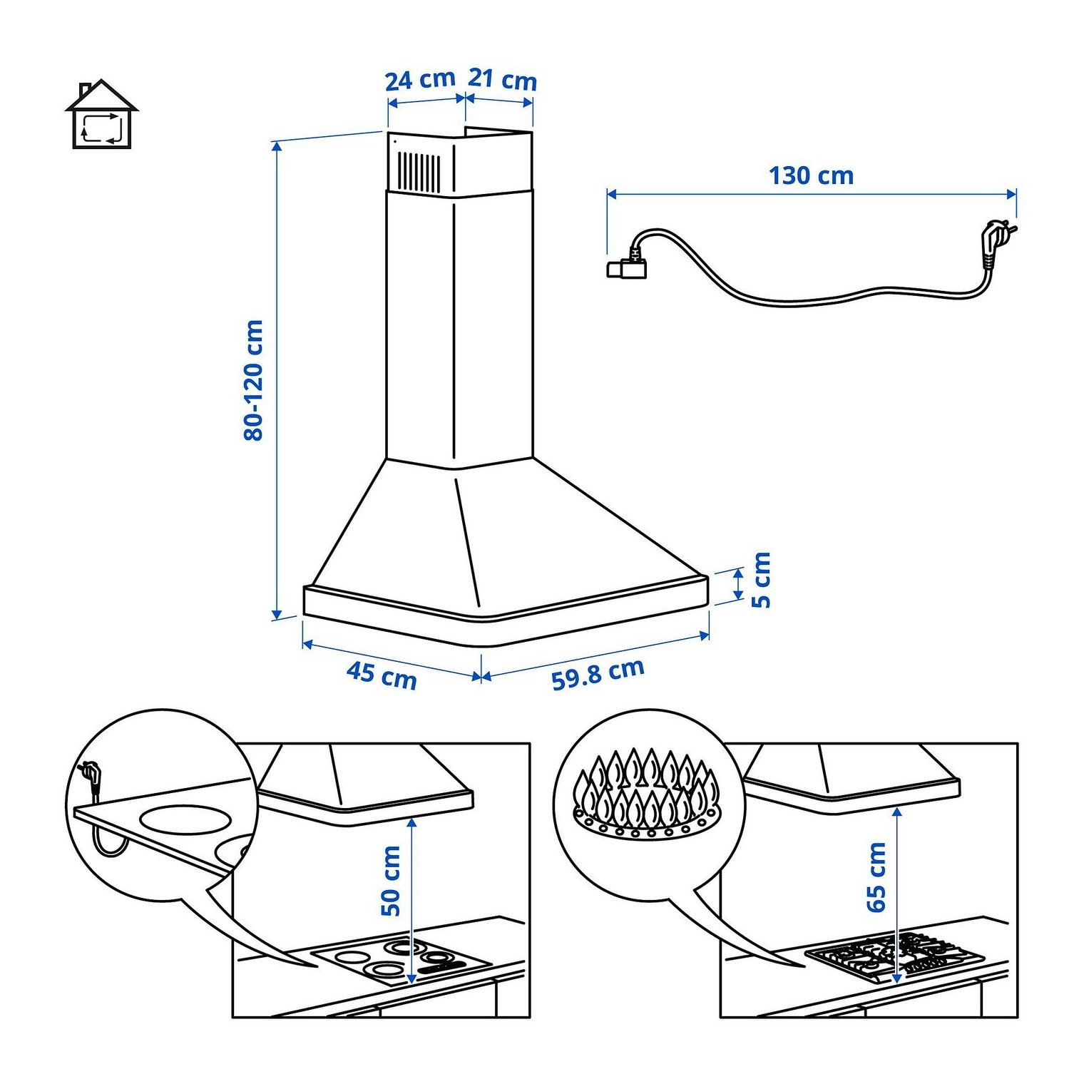Мінімальна висота в режимі циркуляції: 80 см.
