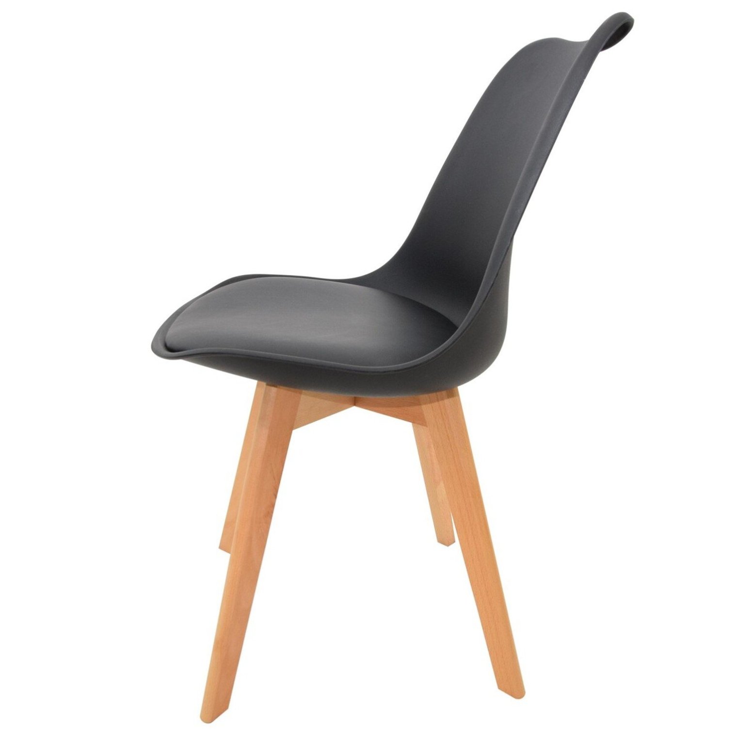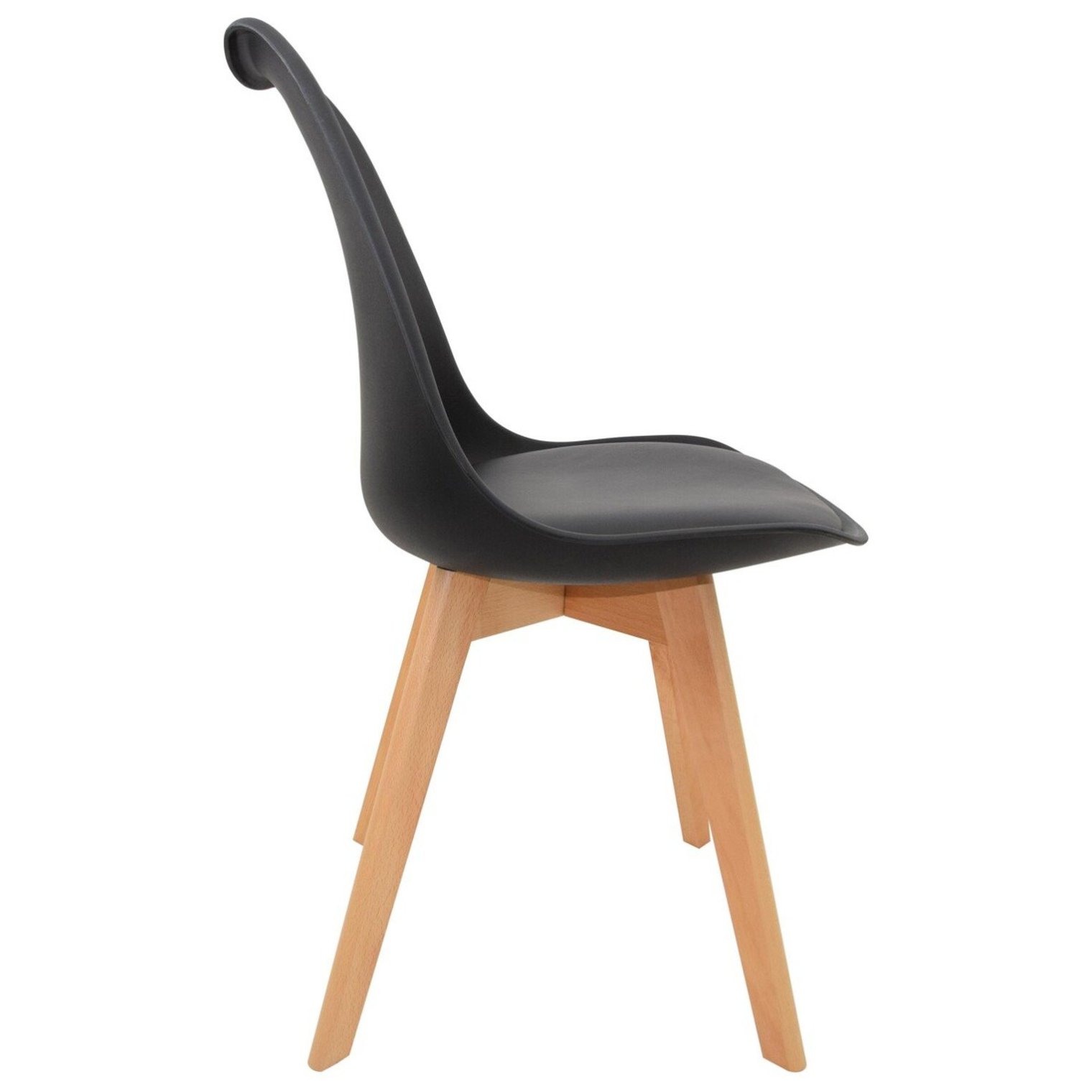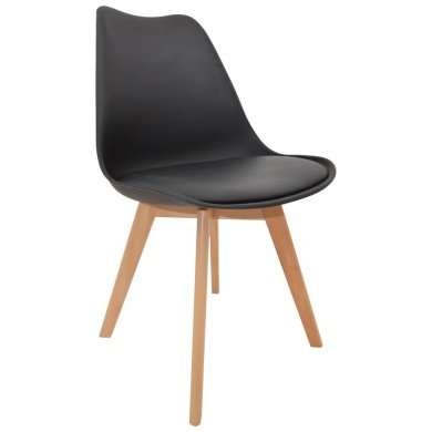 Стілець EMMA має елегантне чорне пластикове сидіння, яке одночасно міцно та легко чиститься. Ергономічна форма забезпечує чудовий комфорт сидіння, що робить його ідеальним вибором для їдалень, кухонь чи віталень.