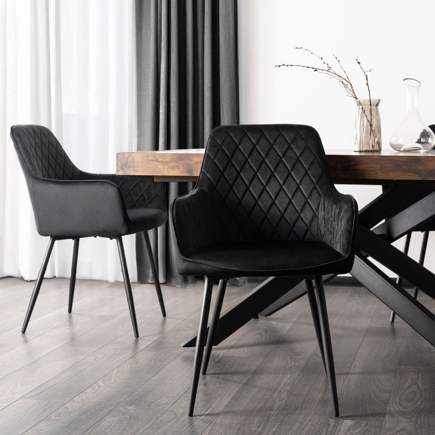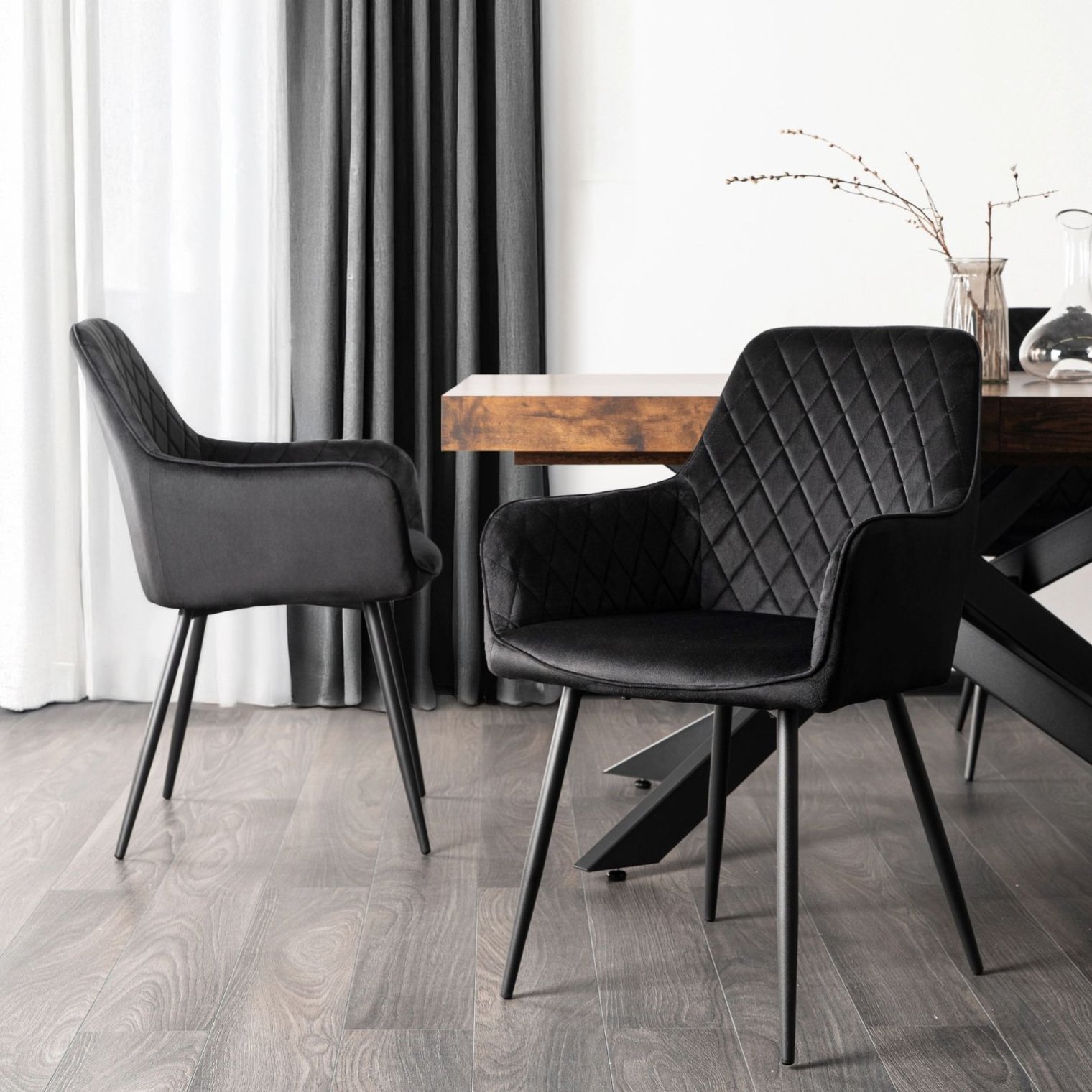 - Сучасний шик — трохи загострені чорні ніжки ідеально поєднуються з оббивкою, створюючи цілісний та виразний дизайн.
