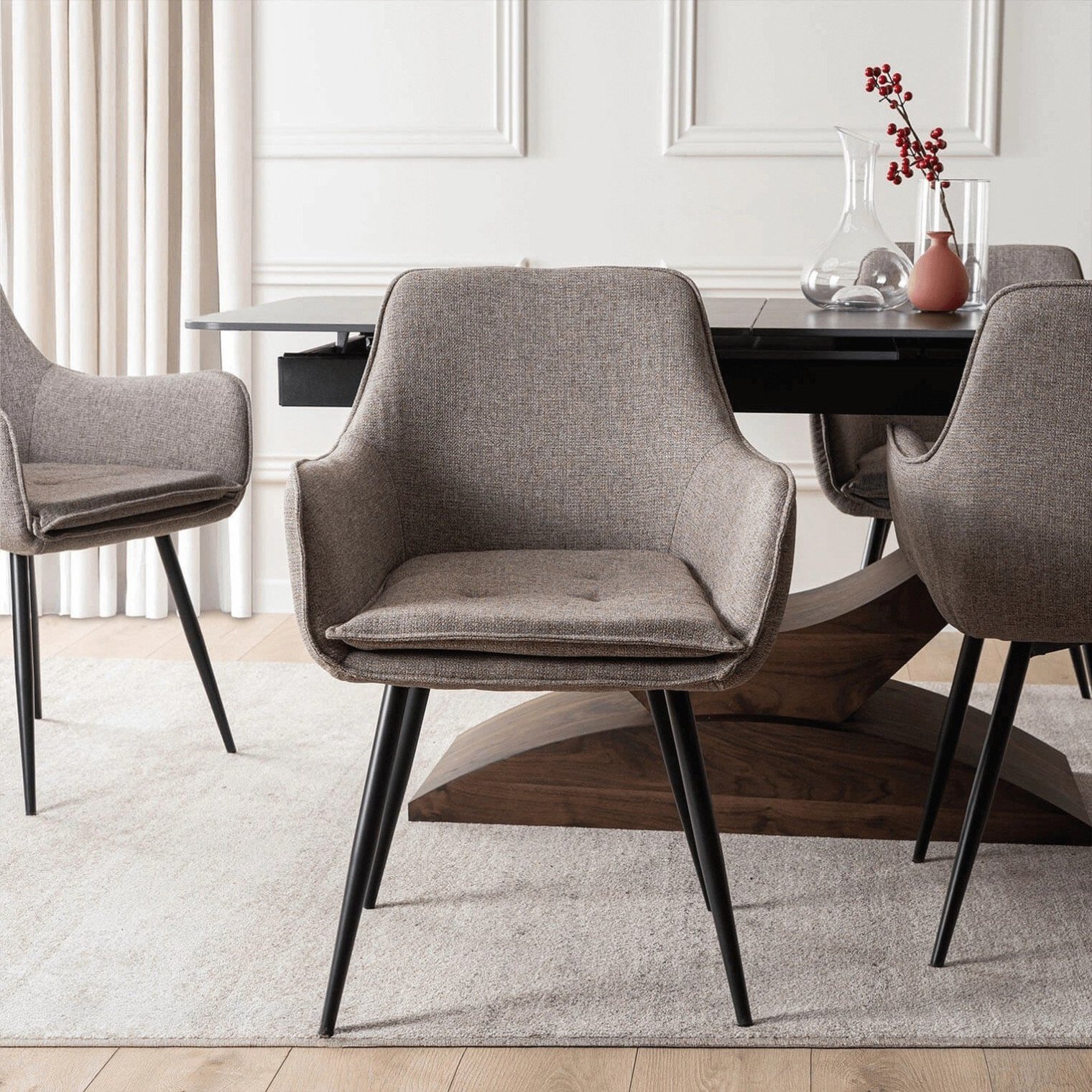 Коричневе крісло Edrick - стильний варіант, який додасть затишку та природного, теплого настрою будь-якому інтер'єру. Сучасна форма, м'яка тканина та міцна конструкція роблять його ідеальним вибором для кухонь, їдалень, віталень та елегантних комерційних приміщень.