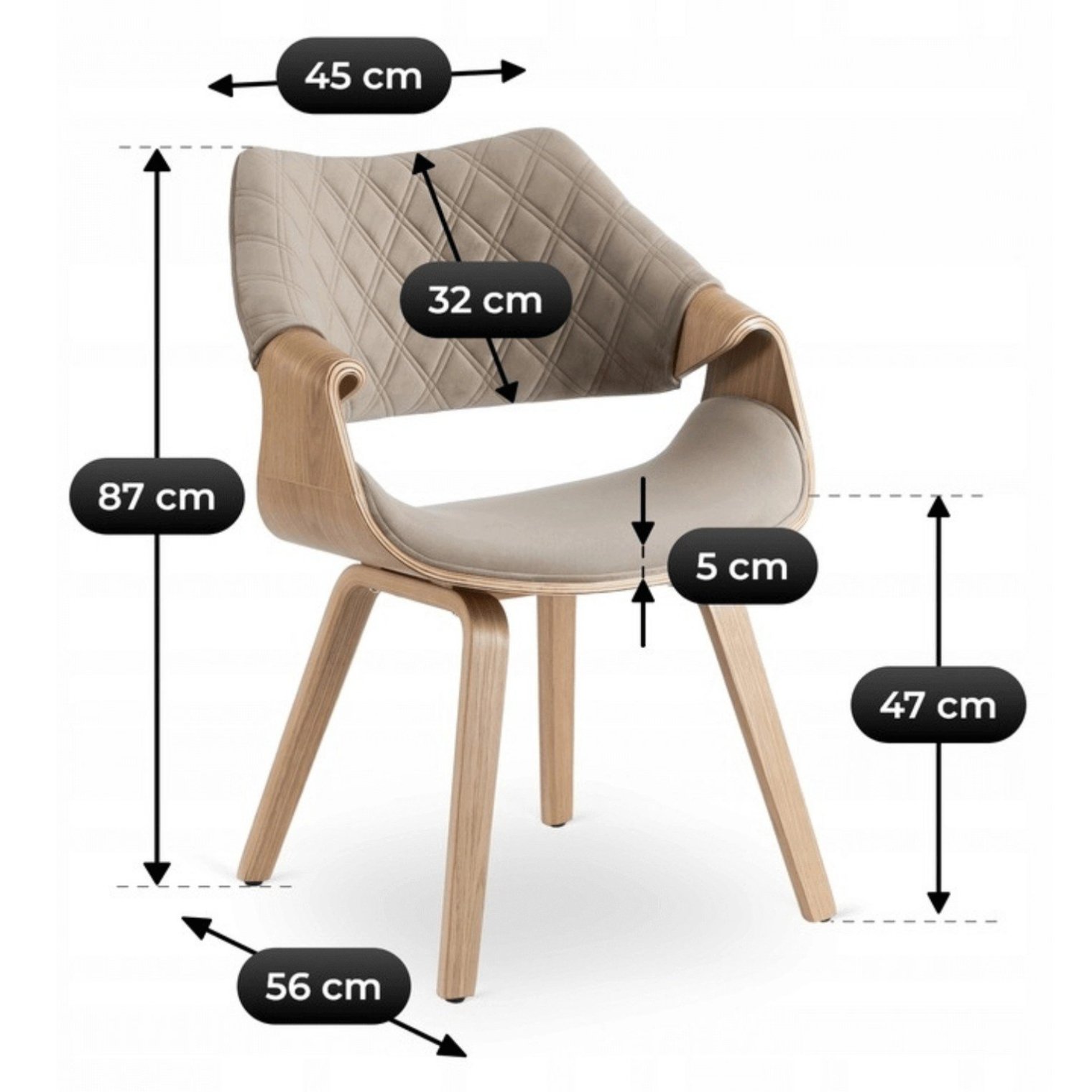 - Корпус та ніжки виготовлені із гнутої фанери кольору золотистого дуба.