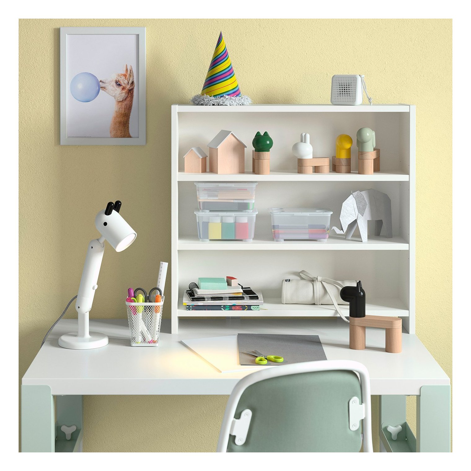 Настільна полиця дозволяє легко зберігати та демонструвати все, від ручок та паперу до книг та іграшок.