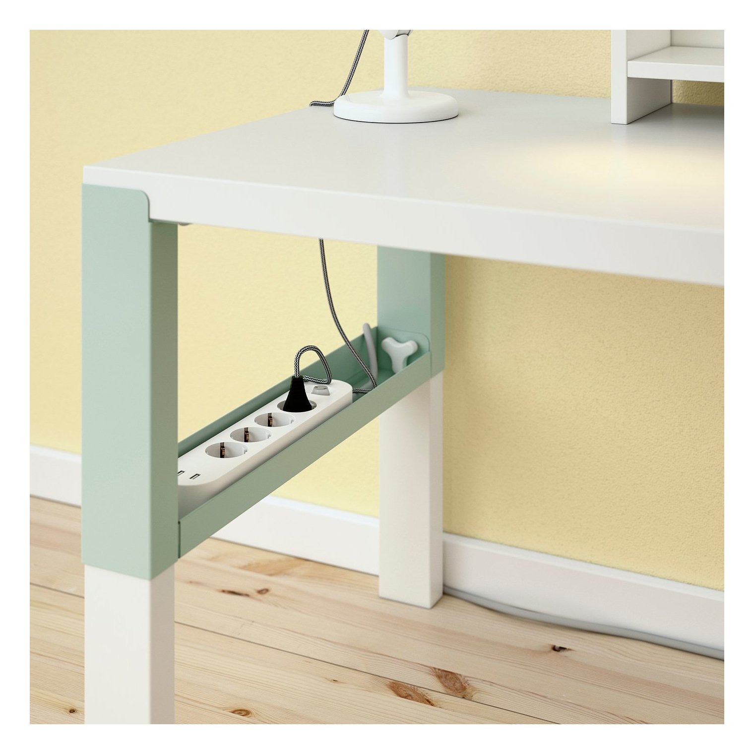 Для підтримки порядку серед кабелів та подовжувачів можна розмістити їх у кабельних утримувачах між передніми та задніми ніжками.