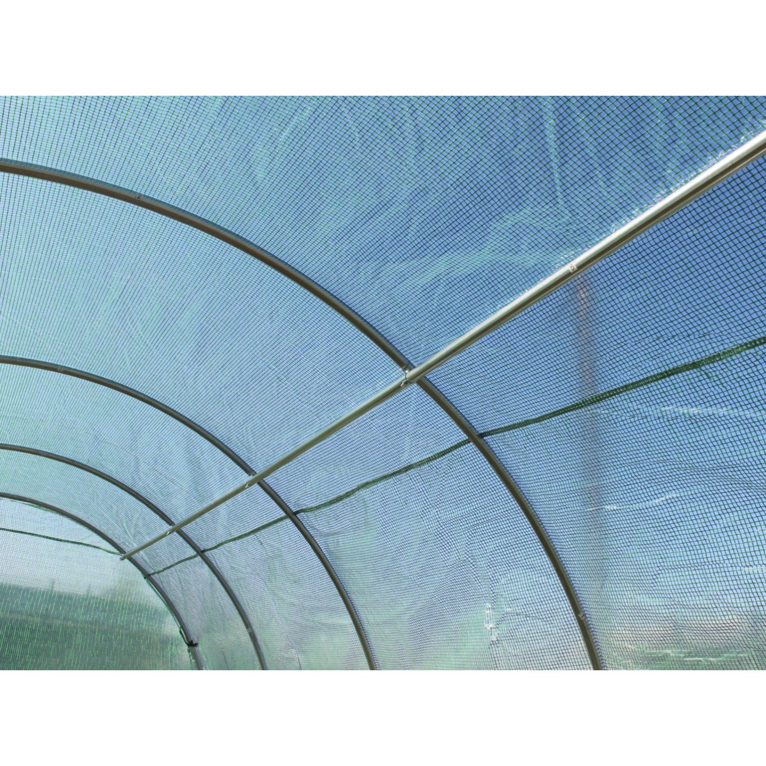 - Теплиця обладнана 2 додатковими верхніми трубами, які відповідають за стійкість і дозволяють підв'язувати мотузки для кучерявих рослин.